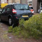 De bestuurder wilde wegrijden maar omdat de auto stond per ongeluk in z’n achteruit stond reed de man hard achteruit in plaats van vooruit. Door de klap drukte hij nog harder het gaspedaal in waardoor de auto verder achteruit reed en ern boom omver drukte. De auto kwam hierdoor met de achterwielen van de grond. Er zat op het moment dat het gebeurde niemand in de andere auto. Niemand is gewond geraakt.