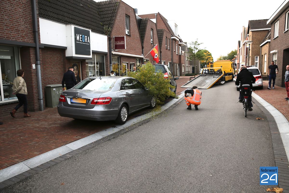 De bestuurder wilde wegrijden maar omdat de auto stond per ongeluk in z’n achteruit stond reed de man hard achteruit in plaats van vooruit. Door de klap drukte hij nog harder het gaspedaal in waardoor de auto verder achteruit reed en ern boom omver drukte. De auto kwam hierdoor met de achterwielen van de grond. Er zat op het moment dat het gebeurde niemand in de andere auto. Niemand is gewond geraakt.