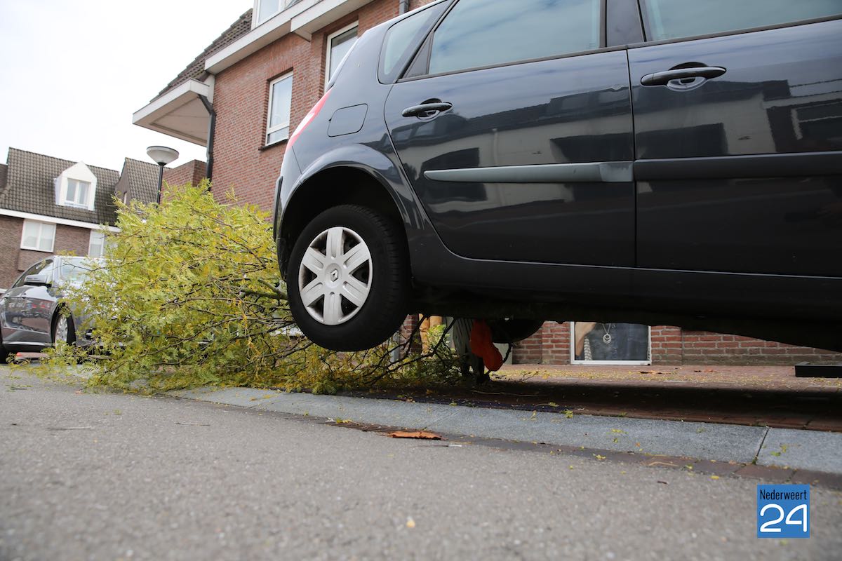 Vrijdagmiddag is een auto boven op een andere auto tot stilstand gekomen in de Paulus Holtenstraat in Nederweert. Volgens ooggetuigen reed de auto plotseling vanuit geparkeerde toestand hard achteruit, tegen een hekje, tegen een boom en kwam tot stilstand boven op een andere auto.