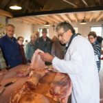 Het slachten gebeurt tegenwoordig in de slachterij maar vroege deed men dat bij de bij de boer thuis. Vandaag bracht slager Thijs Kuepers een geslacht varkens mee naar Eynderhoof om daar te verwerken zoals dat vroeger gebeurde. Thijs liet aan de bezoekers zien dat het hele varken gebruikt kan worden. Naast uitbenen voor het verse vlees maakte hij ook worst, balkenbrij en zult.