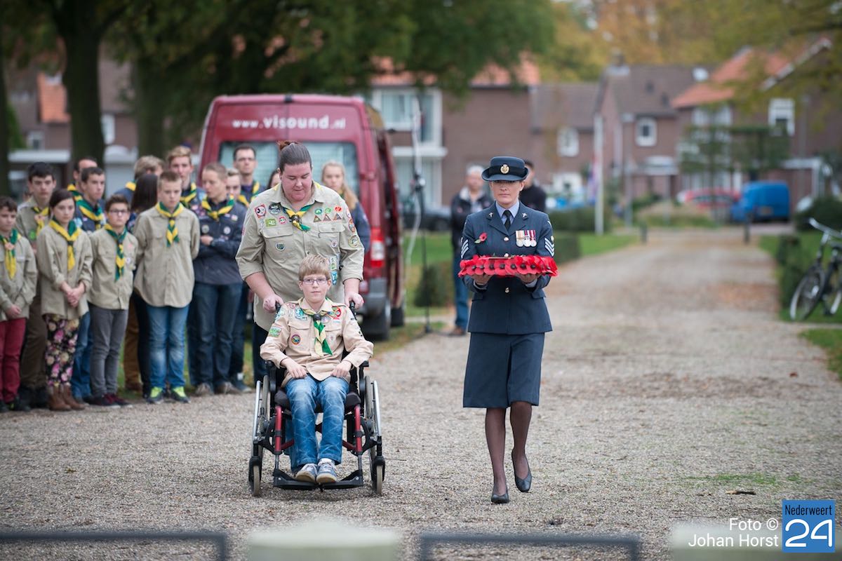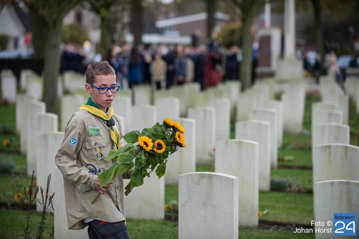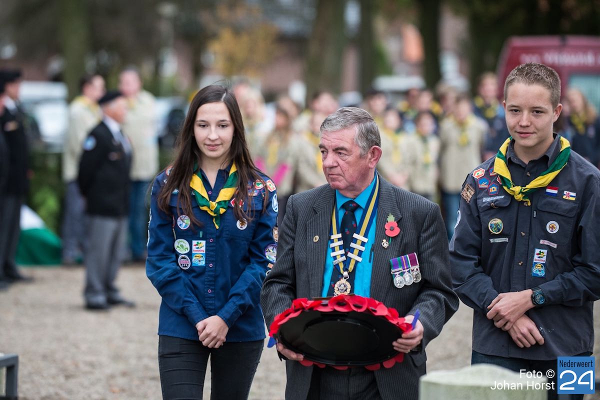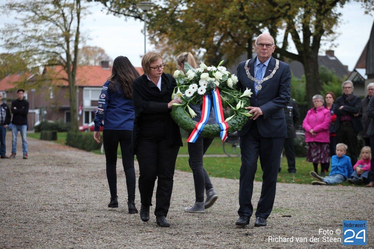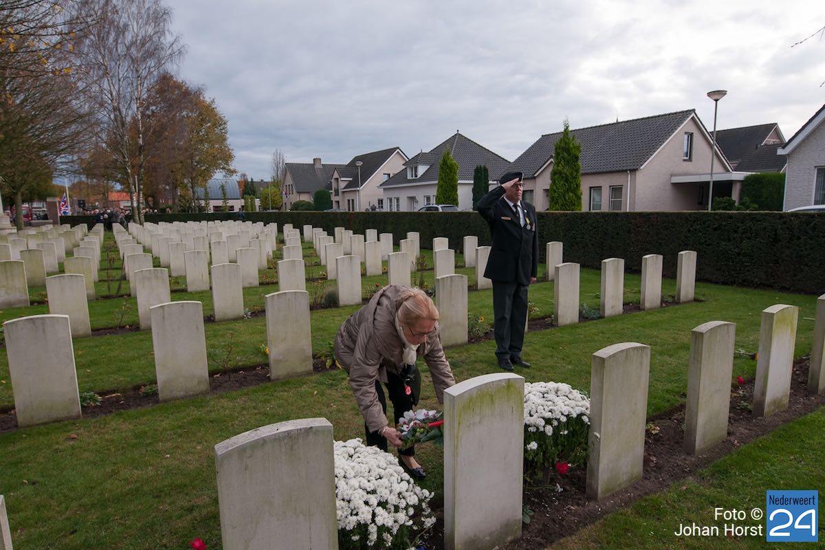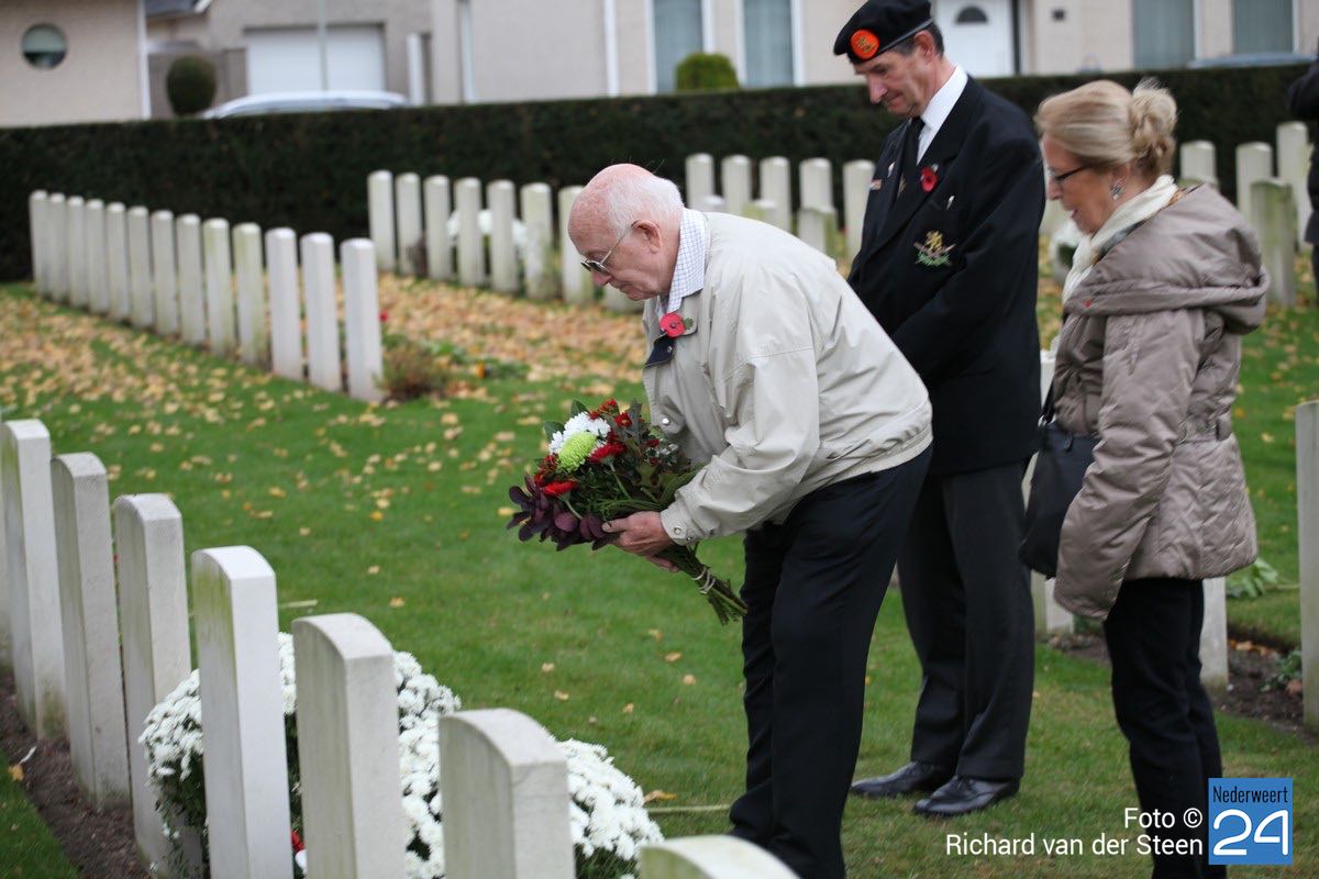 Onder toeziend oog van burgemeester Henk Evers, Harmonie St Joseph, een delegatie van de Bond van Wapenbroeders en overige belangstellenden heeft hij samen met mevrouw van der Sande uit de Moesemanstraat een krans met bloemen gelegd. Het is een zeldzaamheid dat een zoon van een gesneuvelde militair bij de herdenkingsplechtigheid aanwezig is en een krans legt. Mevrouw van der Sande onderhoudt het graf. Allan is hier vandaag en morgen te gast.