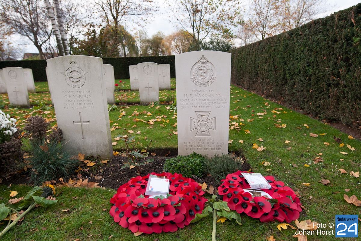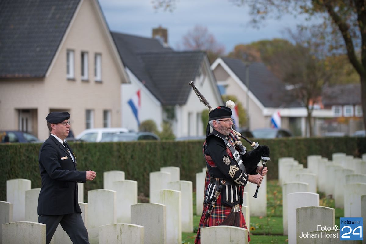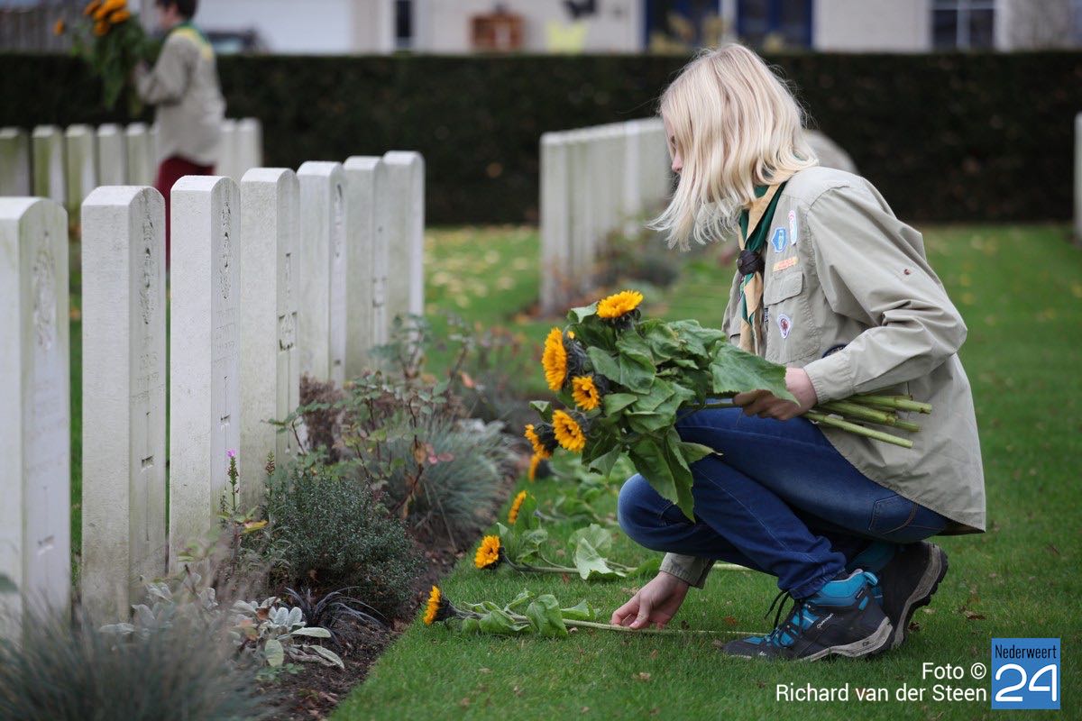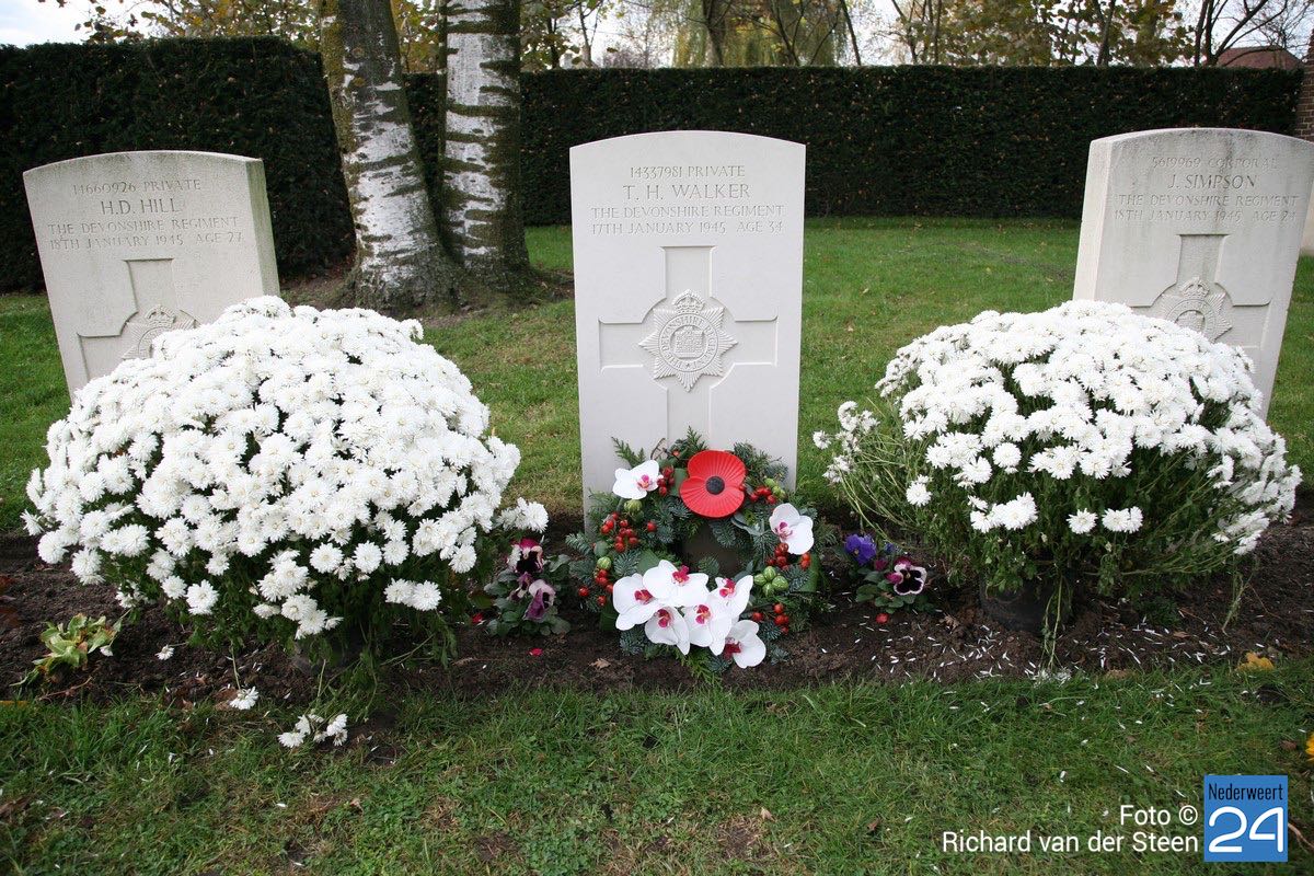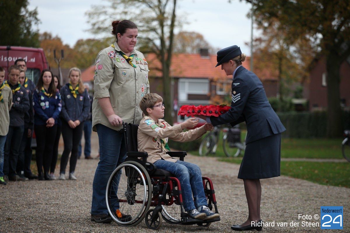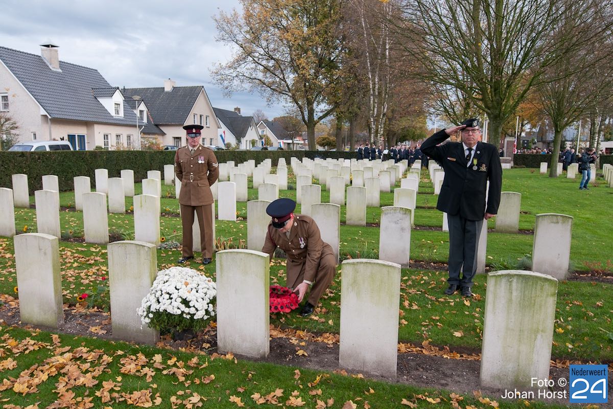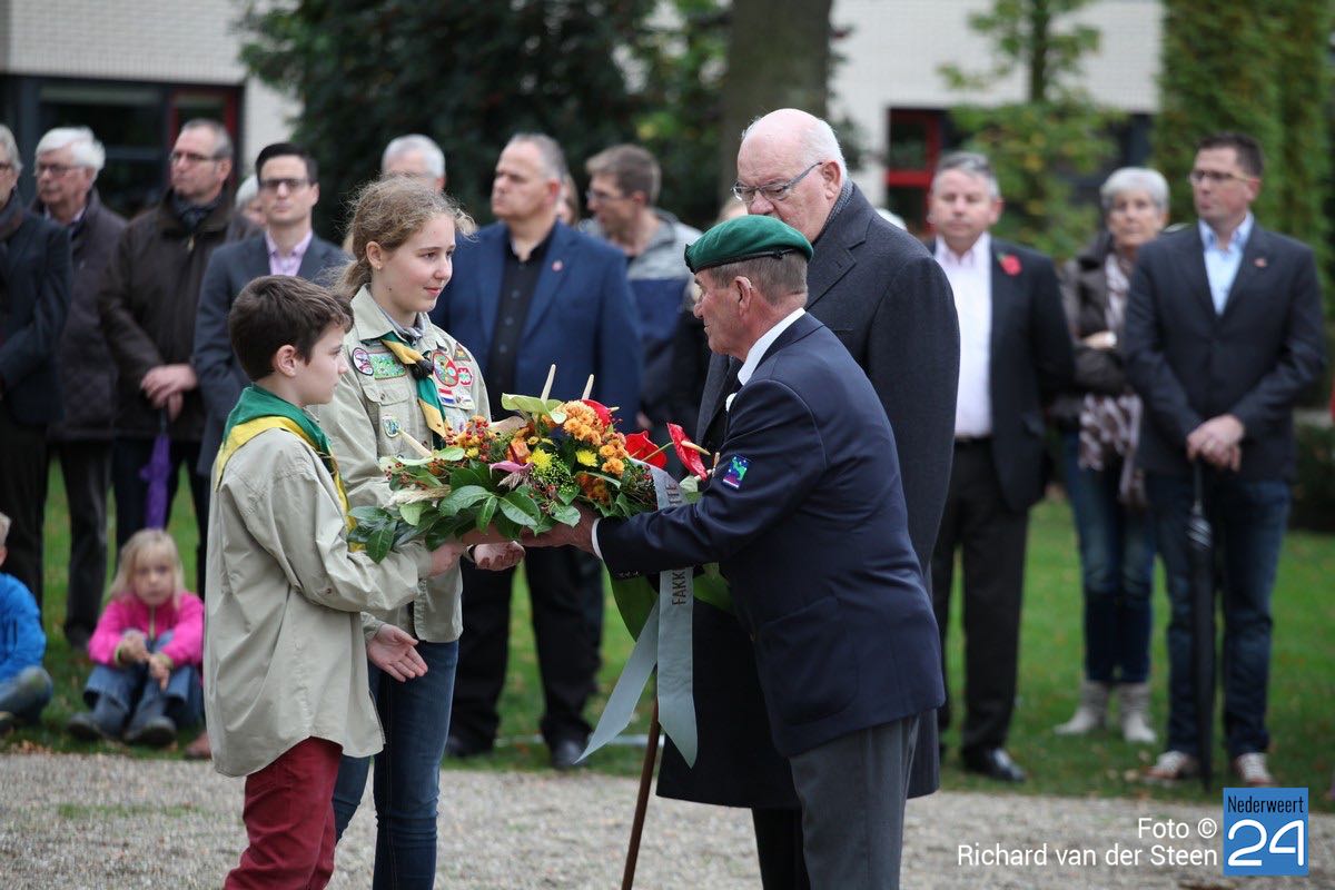 Onder toeziend oog van burgemeester Henk Evers, Harmonie St Joseph, een delegatie van de Bond van Wapenbroeders en overige belangstellenden heeft hij samen met mevrouw van der Sande uit de Moesemanstraat een krans met bloemen gelegd. Het is een zeldzaamheid dat een zoon van een gesneuvelde militair bij de herdenkingsplechtigheid aanwezig is en een krans legt. Mevrouw van der Sande onderhoudt het graf. Allan is hier vandaag en morgen te gast.