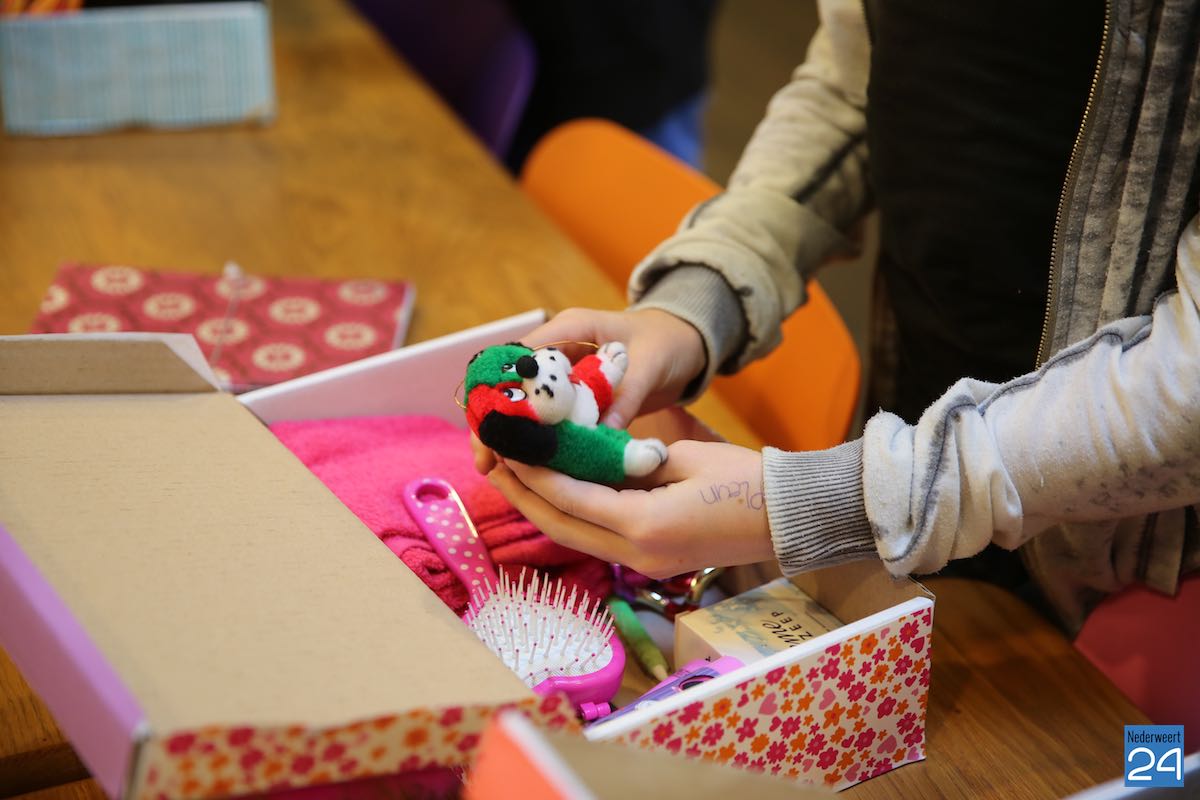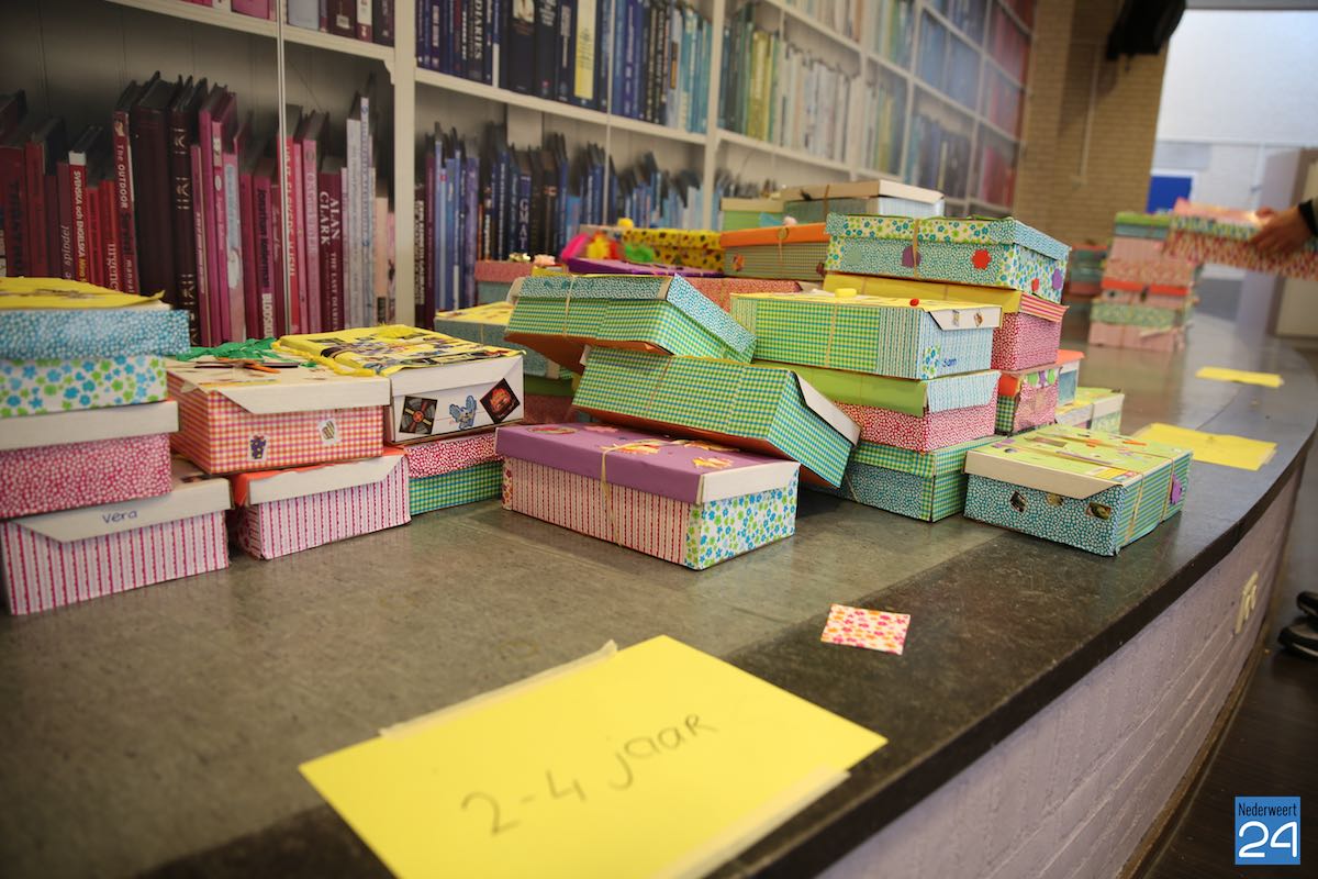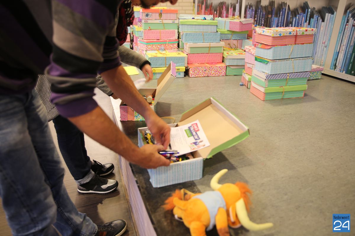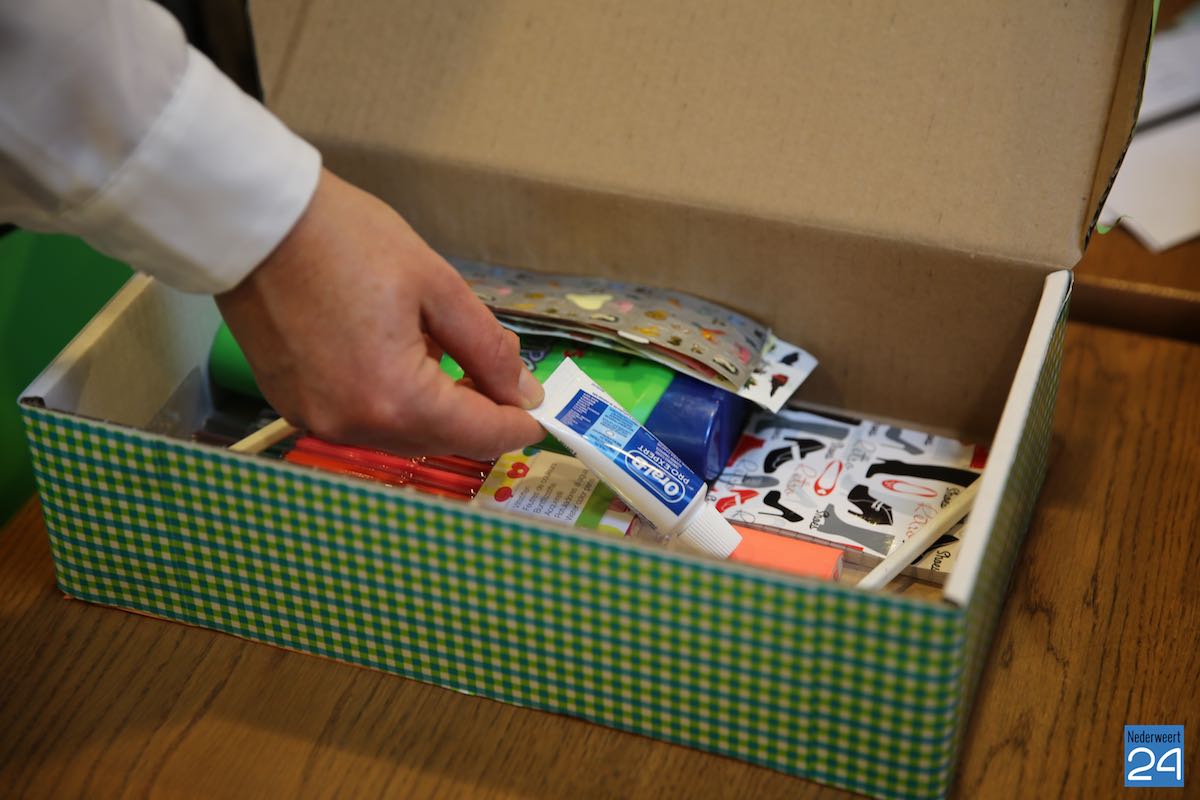 De leerlingen vullen een schoenendoos met schoolspullen, toiletartikelen en speelgoed voor leeftijdsgenootjes in landen als Ghana, Irak, Kenia en Oeganda en doen zo iets concreets voor vriendjes in arme landen. Zo wordt een simpele schoenendoos een onvergetelijk cadeau! Tandarts Spauwen en Spauwen uit Nederweert sponsort voor elke schoenendoos een tandenborstel en tandpasta, wat uiteraard voor de kinderen erg welkom is.