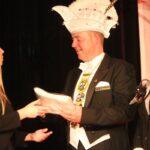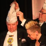 De 46-jarige Ron Kums is vrijdagavond geïnstalleerd als nieuwe vorst van V.V. de Pinmaeker Nederweert. Burgemeester Evers deed de officieel plichtpleging door het omdoen van de vorstenketting en het opsteken van de veren die horen bij het vorstenschap. Dit alles gebeurde onder toeziend oog van zijn vrouw, twee dochter en aanstaande schoonzoon en familie. Natuurlijk waren ook vrienden, bekend, de fietsclub en alle zusterverenigingen van V.V. de Pinmaekers naar de Pinnenhof gekomen om deze happening te vieren.