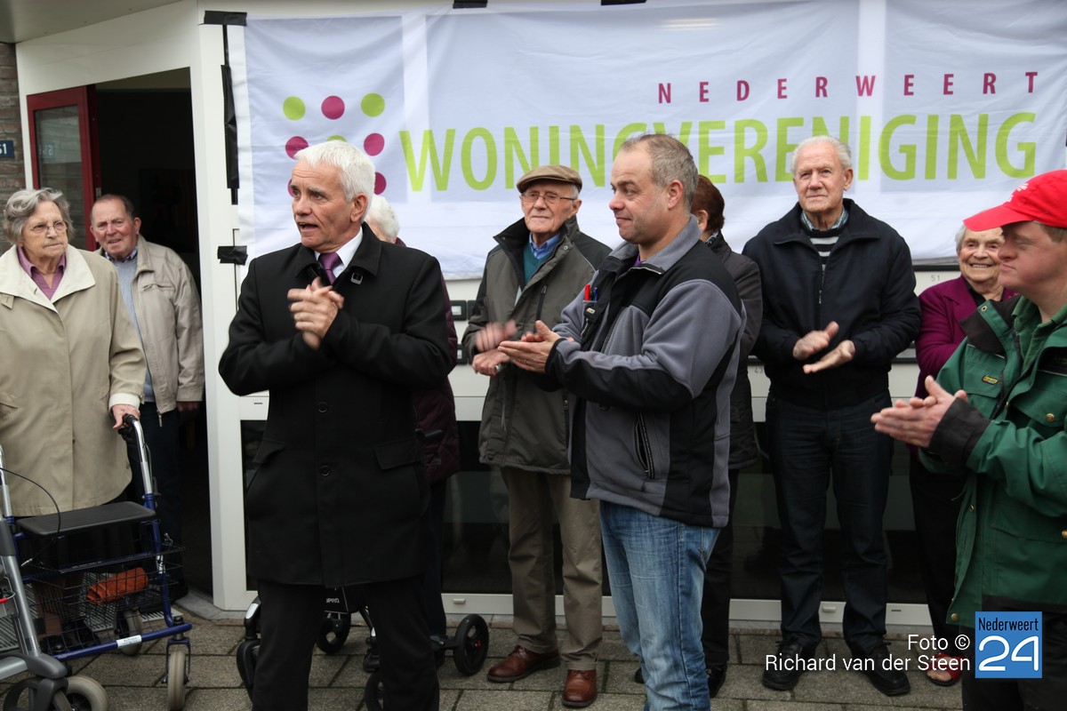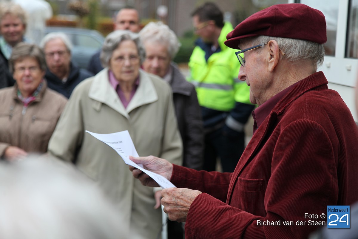 Om 13.00 uur hebben wethouder Geraats namens de gemeente en Wil de Bruin namens de woningvereniging het door de woningvereniging geschonken nieuwe naambord boven de ingang onthuld en de bewoners toegesproken.Van de gemeente ontvingen de bewoners, naast de nieuwe planten, ook nog een onkruidspuit.