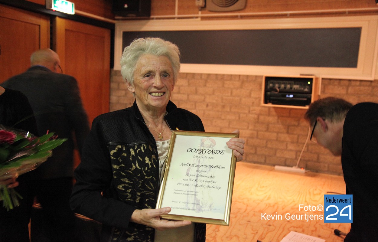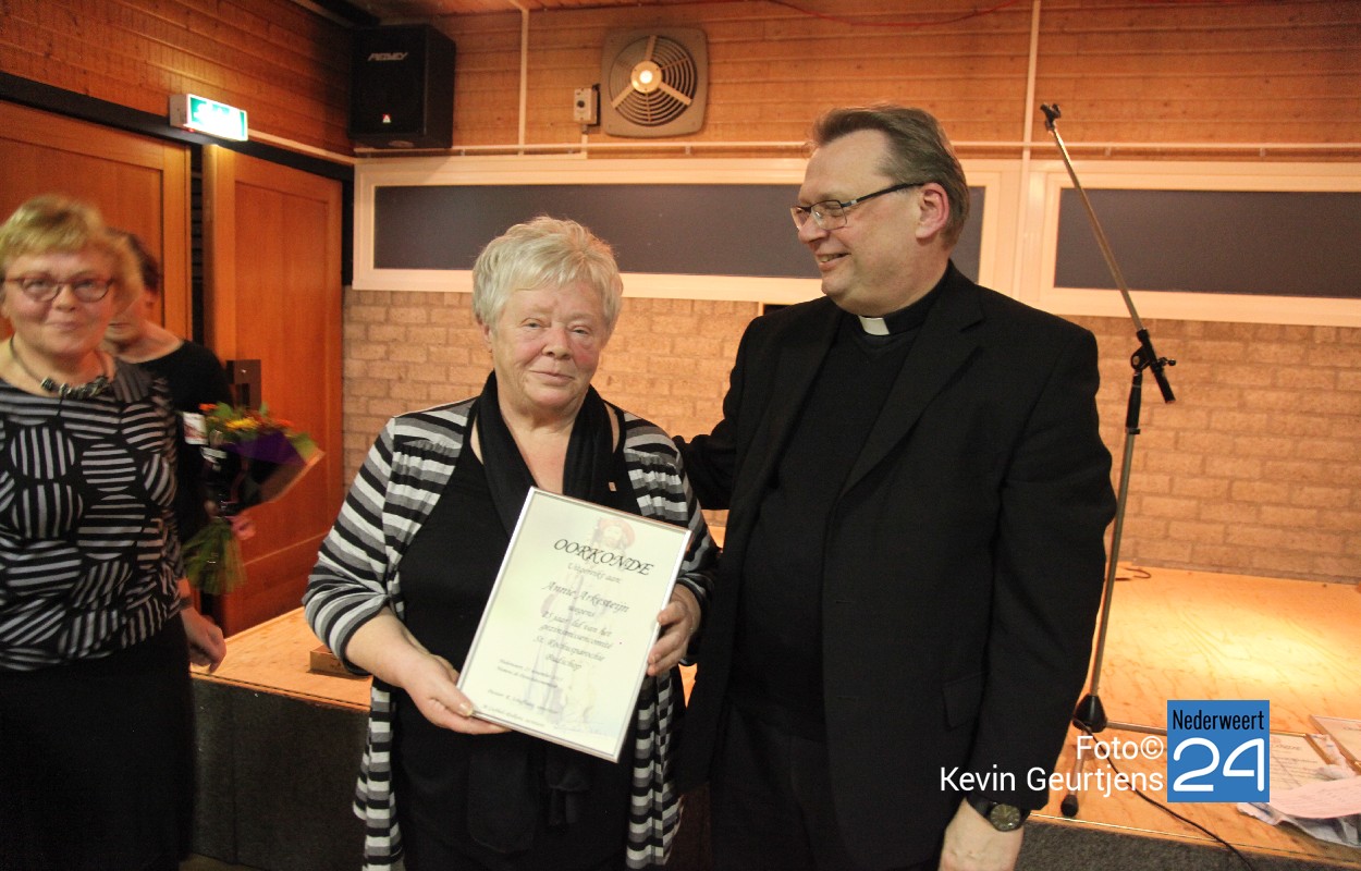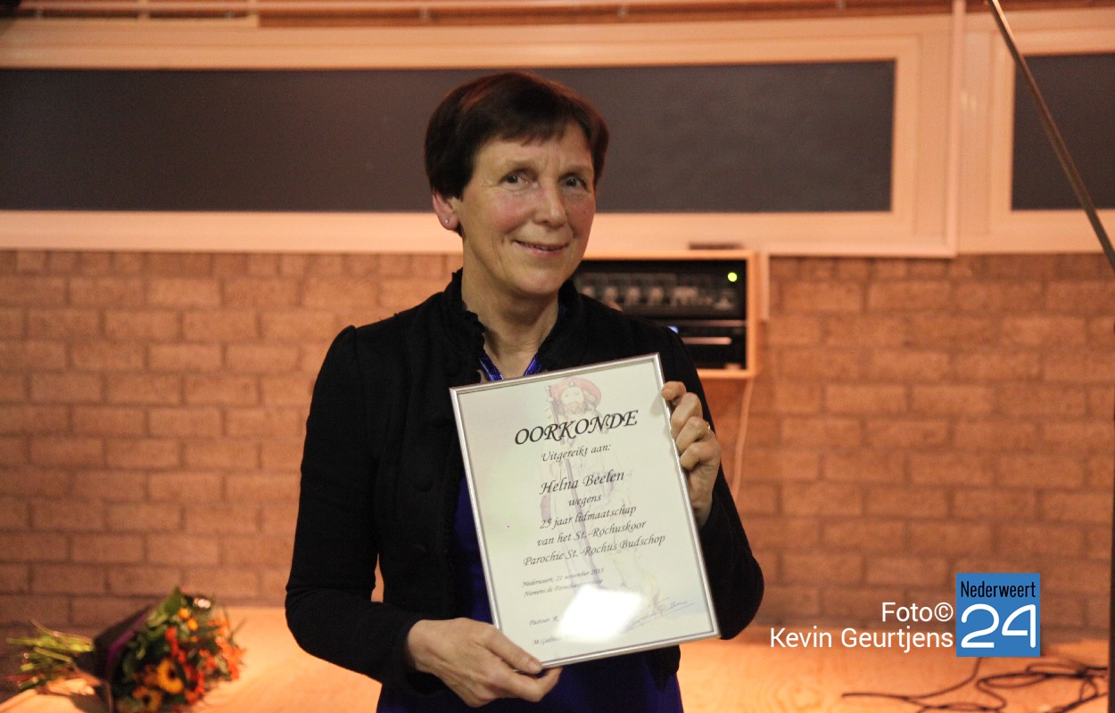 De zilveren jubilarissen kregen door pastoor Schuffelers een zilveren speld opgespeld en een bos bloemen. Dit waren Annie Arkesteijn, 25 jaar lid van het gezinsmissencomité; Helna Beelen, 25 jaar Organiste en Bert Verheggen, 25 jaar collectant, koster en accoliet voor de kerk. Ook waren er twee gouden jubilea, te weten Trees Simons-Kessels, 50 jaar lid van het St. Rochuskoor en Nelly Knapen-Heiblom, 50 jaar lid van het St. Rochuskoor. Zij kregen de gouden erespeld uitgereikt door Pastoor Schefflers. Jan Korsten en Lei Brangers ontvingen een bos bloemen wegens 30-jarig lidmaatschap van het koor.