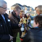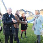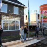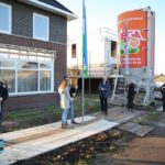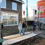 Per kabelbaan kregen de bewoners van de eerste drie Patio ‘Kolonel-woningen’ champagne aangeboden door wethouder Hubert Mackus onder begeleiding van een wave van ca. 80 andere kopers die inmiddels ook een huis gekocht hebben.