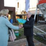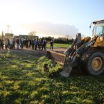 Femke Linders nam plaats in de graafmachine en vertegenwoordigde hiermee een nieuwe stroom van 12 Brigadier kopers. Onder luid applaus maakt ze het terrein bouwrijp.