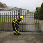 De brandweer stond echter voor een uitdaging omdat de poort van het perceel afgesloten was en de eigenaar nergens te bekennen was. Na overleg met de politie werd besloten om de poort uit de scharnieren te schroeven. De brandweer heeft de brand geblust.