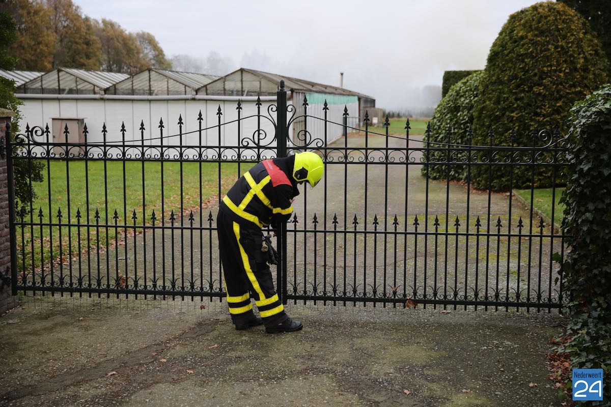 De brandweer stond echter voor een uitdaging omdat de poort van het perceel afgesloten was en de eigenaar nergens te bekennen was. Na overleg met de politie werd besloten om de poort uit de scharnieren te schroeven. De brandweer heeft de brand geblust.