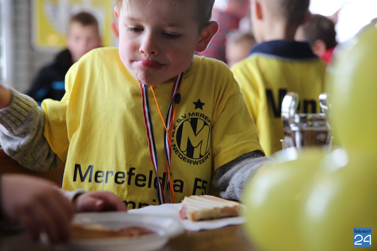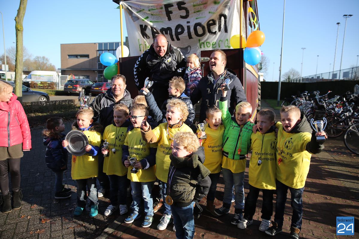 Zaterdag is de F5 van Merefeldia kampioen geworden in hun klasse. De mannen van het trainers trio Paul Knapen, Willem Jan Mollemans en Sjoerd Buijs wonnen in Nederweert afgetekend met 13-0 van Eindse Boys F3.
