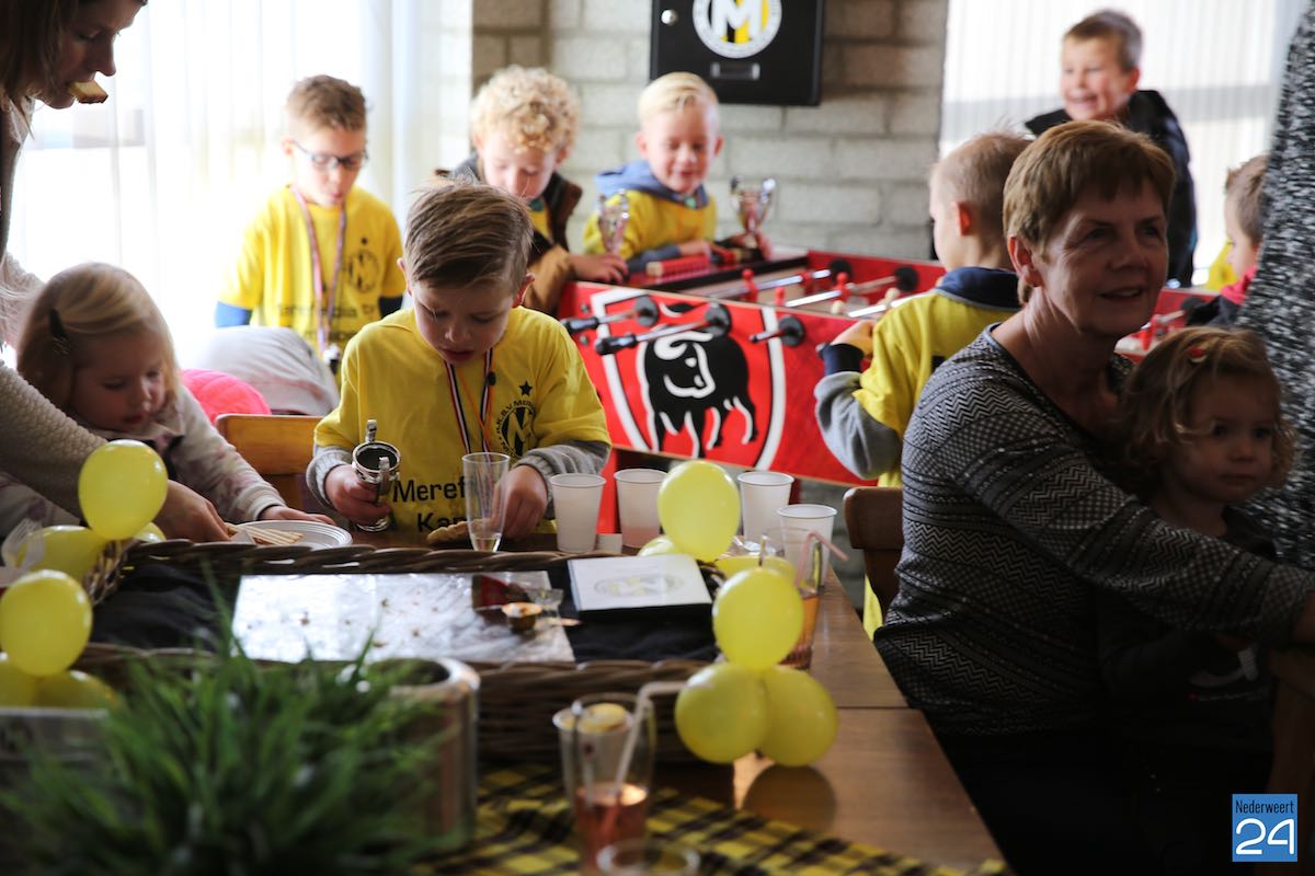 Het kampioens-team bestaat uit Rik van den Broek, Sem Buijs, Kevin Mollemans, Pieke Smeets, Stan Heijnemans, Sem Knapen, Menno Looijen, Jorn Vink, Mik Vestjens en Ruben Smolenaers. Met een mooi feestprogramma in de kantine van Merefeldia, in de huifkar, bij Mc Donalds en Pins en Pints bleef het nog lang onrustig in het dorp.