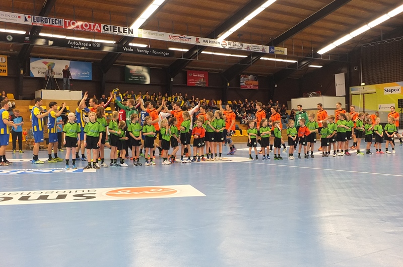 Zaterdagavond vertrok een luxe touringcar met jeugd, ouders en andere handballiefhebbers van MEOS Handbal richting sporthal De Heuf in Panningen. De F-jeugd uit Nederweert was door Bevo uitgenodigd om met de spelers van de heren 1 het veld op te lopen bij het voorstellen van de teams. Dit is natuurlijk een droom voor elk handballertje in de dop.