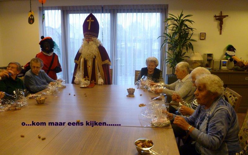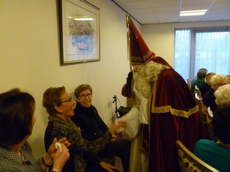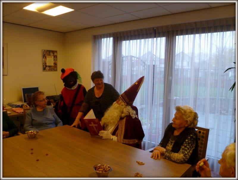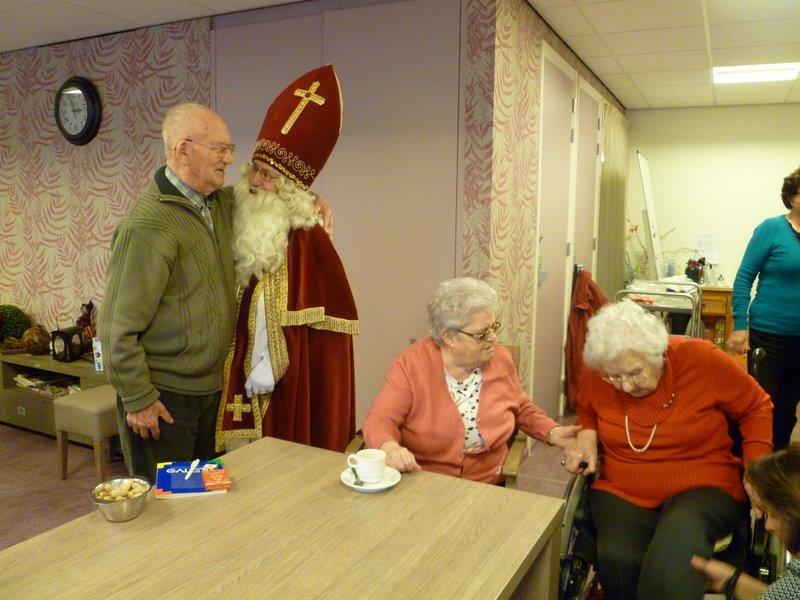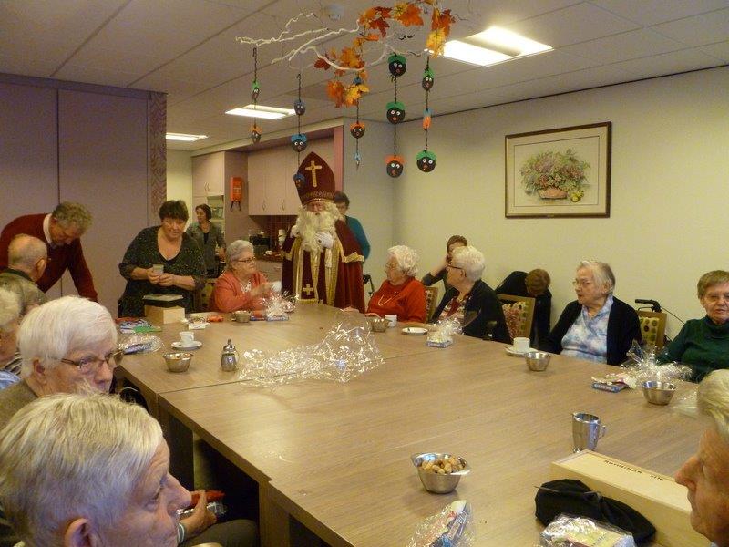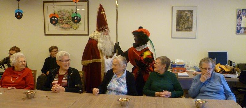De Sint en zijn trouwe vriend Zwarte Piet verrasten de deelnemers met hun komst. Het is heel duidelijk dat Sinterklaas niet alleen op de kinderen let, ook over alle deelnemers van de Huiskamer wist hij wel iets te vertellen. Verder had hij voor iedereen een kadootje, dat onlangs door de eigen vrijwilligers was geknutseld. Het was vooral een heel gezellige middag met pepernoten en sinterklaasliedjes; zowel de deelnemers alsook de vrijwilligers hebben genoten. Ook de deelnemers van de Huiskamer op donderdag zullen nog met een bezoek worden vereerd.