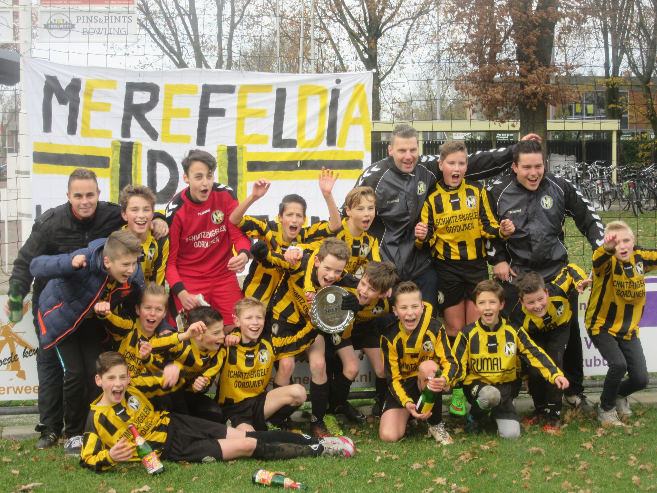 Het was een druk voetbalweekend voor de jeugd. Overal zien werden kampioenen bekend en ook bij Merefeldia in Nederweert. Na een 8-0 overwinning tegen Leveroy D1 is Merefeldia D2 kampioen geworden.