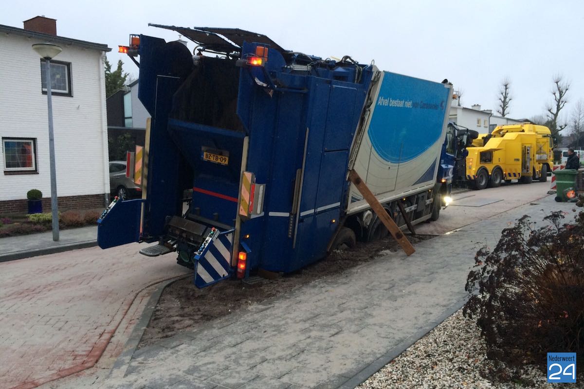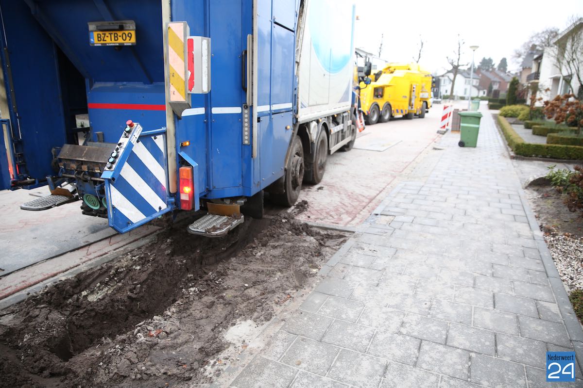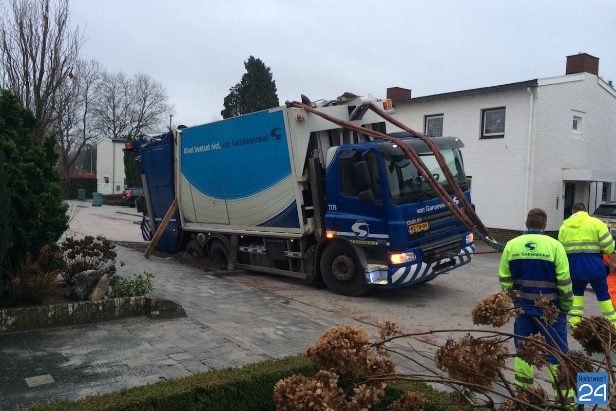 Woensdagmorgen is een vuilniswagen van Van Gansewinkel vast komen te zitten in de St Antoniusstraat in Weert.