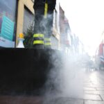 Hoogstraat Weert 2Donderdagmorgen heeft een voorbijganger de brandweer gealarmeerd omdat hij dacht dat een podium in brand stond. Het podium staat in de Hoogstraat in het centrum van Weert in het kader van Winters Weert.