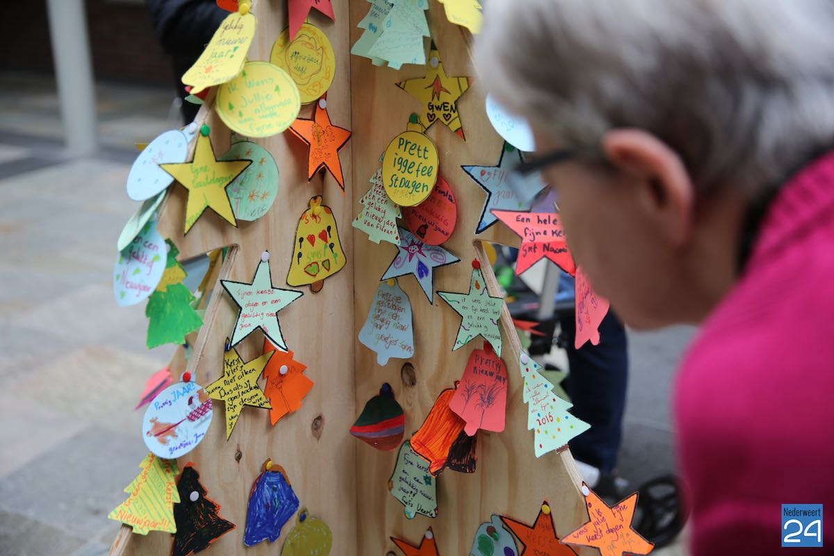 Leerlingen van groep 8 van OBS De Klimop in Nederweert hebben vrijdagmorgen een kerstboom vol met kerstwensen naar de bewoners van Domus Bona Ventura gebracht.