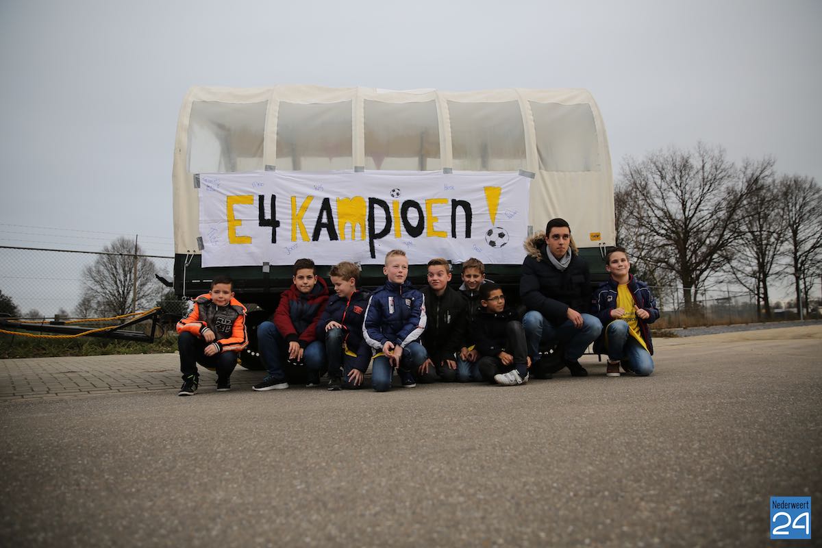 De trotse ouders van de kampioenen hebben zaterdagmiddag 19 december een leuke middag georganiseerd voor de helden. Ze begonnen sportief met een potje bowlen bij Pins & Pints in Nederweert. Daar werden ze met de huifkar opgehaald en onder luide muziek door Nederweert gereden werden. Daarna werd er pizza gebakken en gegeten bij Amon en als afsluiter kregen ze nog een receptie aangeboden door de club. Een super feestdag voor kampioenen die het verdiend hebben.