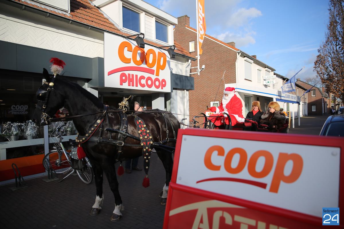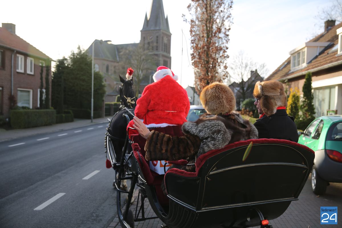 Kerstman door straten van Ospel 5De kerstman reed vandaag  op zijn arrenslee door de straten van Ospel. Natuurlijk mooi omdat het bijna kerst is maar ook gewoon noodzakelijk omdat Frans, een bewoner van het Thomashuis in Ospeldijk, even naar de Phicoop moest om boodschappen te doen.