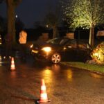 De bestuurster van de auto kwam aanrijden en zag dat ze niet door kon. Toen ze achteruit reed om te draaien zag ze een sloot over het hoofd waarna ze hier net met de achterwielen in gleed. Omdat de auto op een redelijk donkere plek stond heeft de brandweer toezicht gehouden tot de politie ter plaatse was. De berger heeft de auto uit de sloot getrokken waarna de bestuurster haar weg weer kon voortzetten.