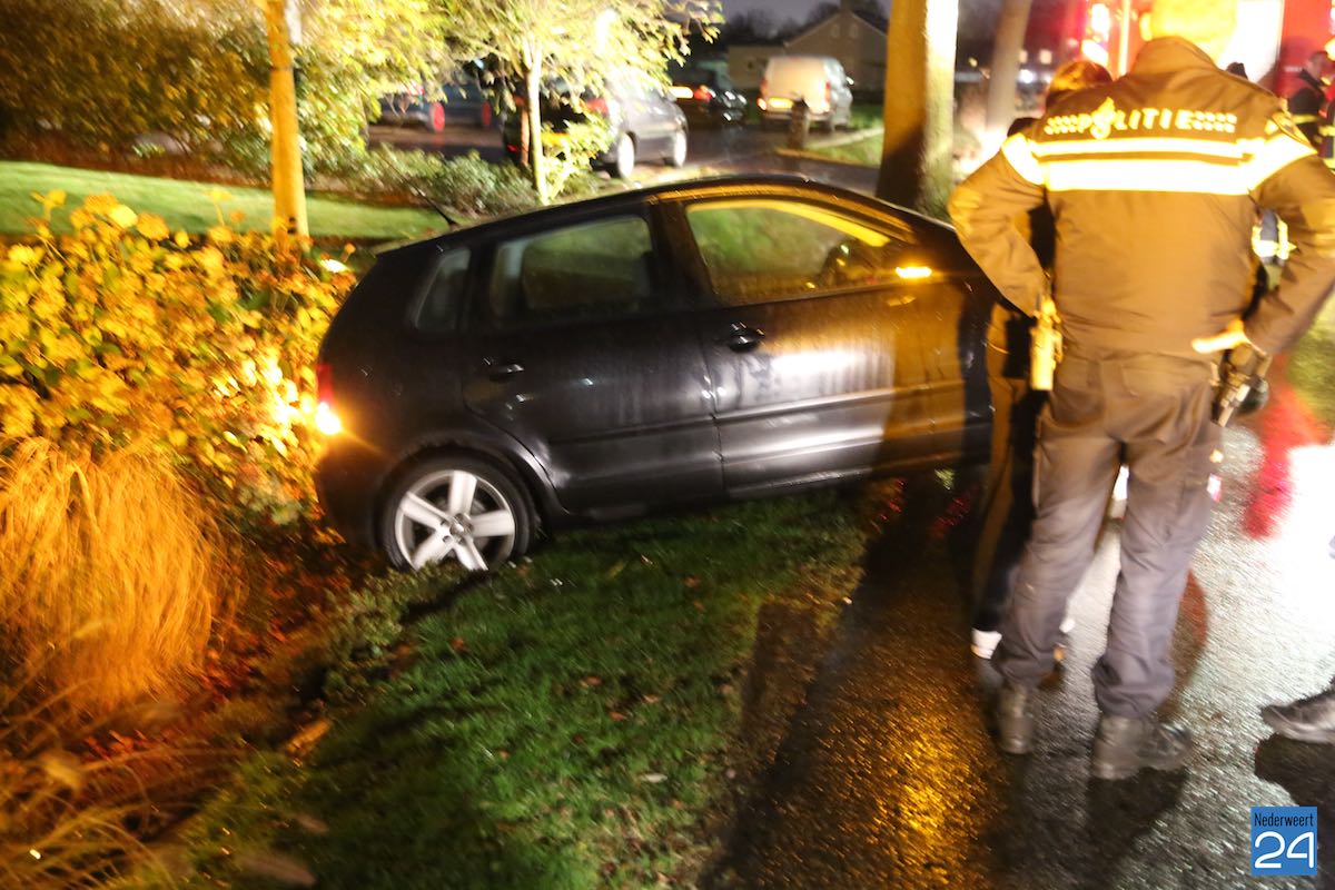 Donderdagavond is een auto in de sloot gereden op Budschop in Nederweert. Het ongelukje gebeurde op het moment dat de brandweer bezig was met het blussen van de schoorsteenbrand.
