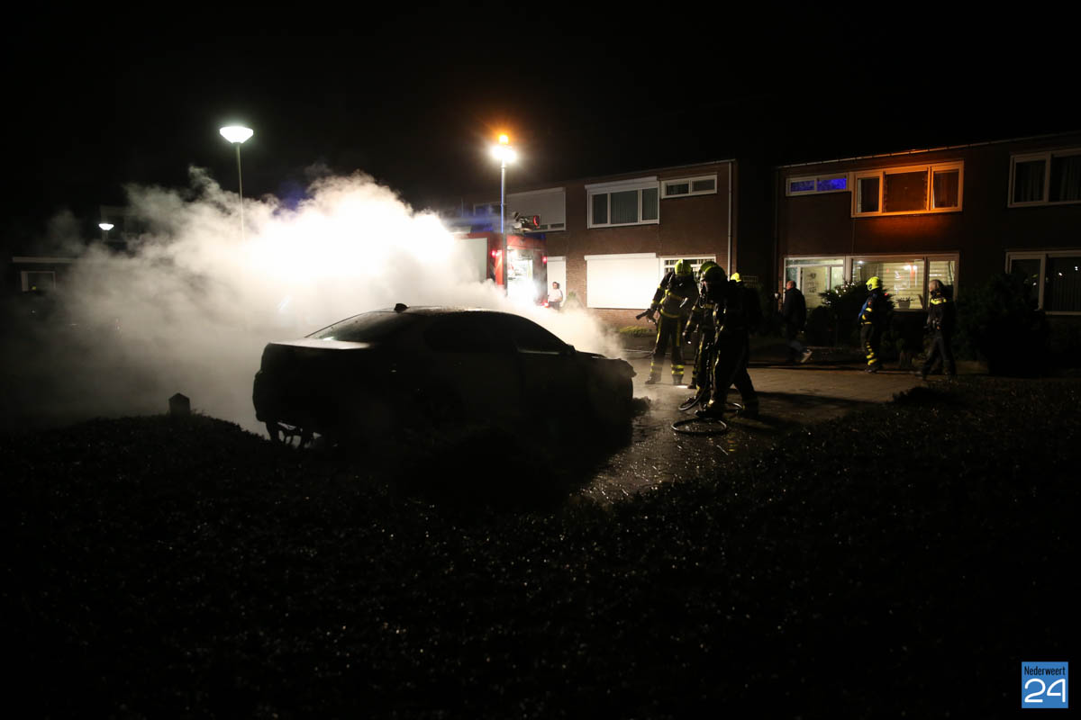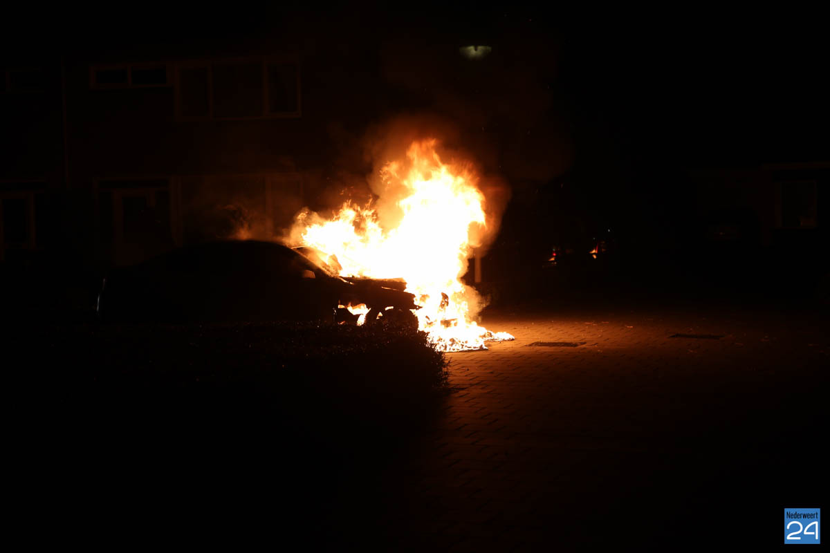 Autobrand Hazelaarstraat Nederweert-1In de nacht van woensdag op donderdag is een auto die geparkeerd stond op een parkeervak aan de Hazelaaastraat in Nederweert volledig uitgebrand.
