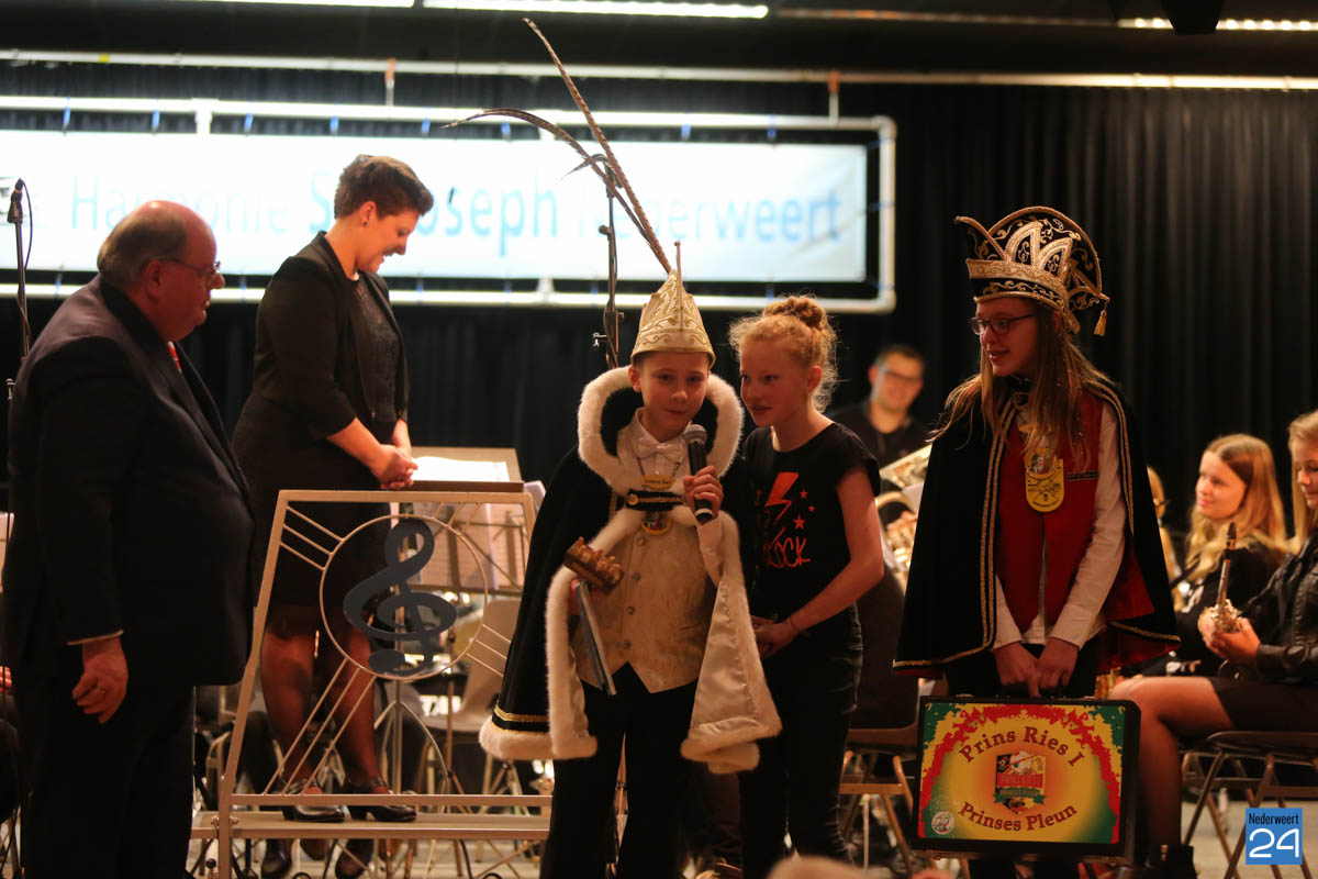Na een korte inleiding van voorzitter Giel Bruijnaers en een korte toespraak van jeugdprins Ries I en jeugdprinses Pleun was het tijd voor muziek. Tijdens het concert konden de aanwezige genieten van de muziek van de jeugdharmonie (deze keer onder leiding van Mieke Douven-Salemans), de slagwerkgroep (onder leiding van Patrick Vlassak) en het harmonieorkest (onder leiding van Fer Koolen) optreden. Dit jaar met zang van Peter Poell en met Stefan Castro op melodisch slagwerk. De entree was zoals altijd gratis maar een vrije gift was natuurlijk wel mogelijk en welkom.