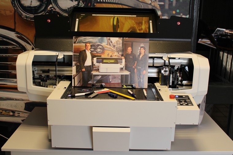 Sticker Xpress is gespecialiseerd in klei – en grootformaat full-colour printen, textielbedrukking, raamdecoratie, autobelettering, banners en displays, spandoeken, stickers, canvas en het bedrukken van relatiegeschenken. Eigenaren Björn Verbeek en Maartje Buijs werkten al met een grootformaat printer van deze lijn. “We zijn zeer tevreden over de combinatie van beide printers. De nieuwe producties zijn populair en worden goed ontvangen in de markt. Flexibiliteit en korte levertijden zijn belangrijk voor ons succes. Ook daarin biedt de nieuwe printer ons meer mogelijkheden,” aldus een trotse Maartje.