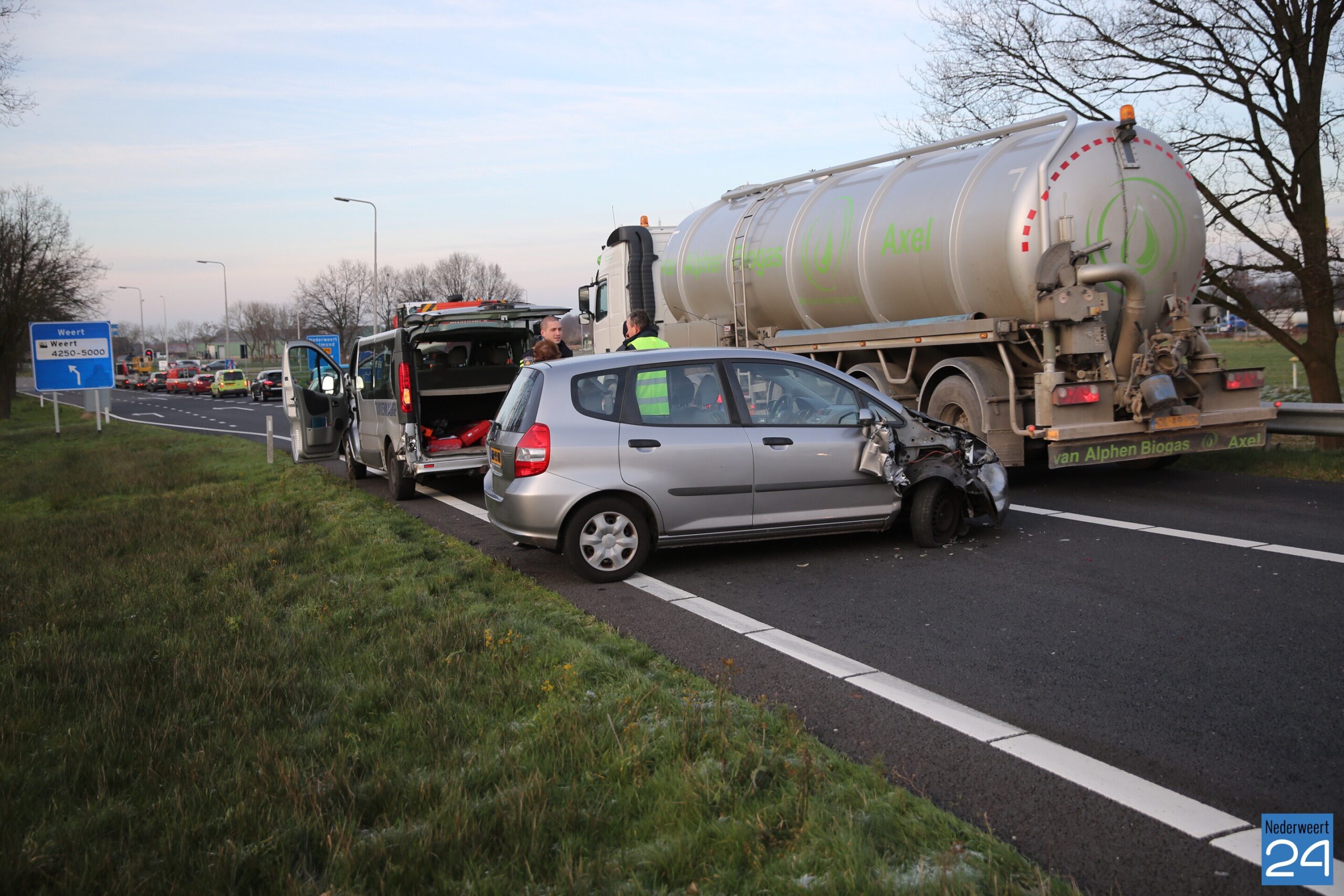 Maandagmiddag heeft een kopstaart-botsing op de afrit van de A2 bij Nederweert flink wat schade veroorzaakt. Rond kwart over vier klapte zo’n 100 meter voor de verkeerslichten een personenauto op een bestelbus.
