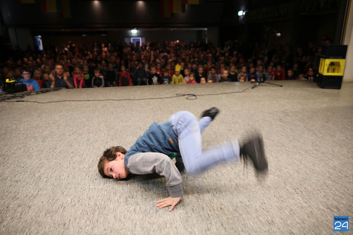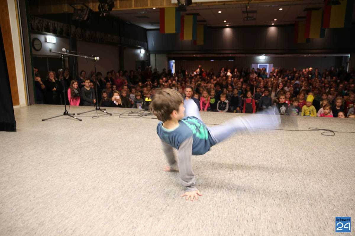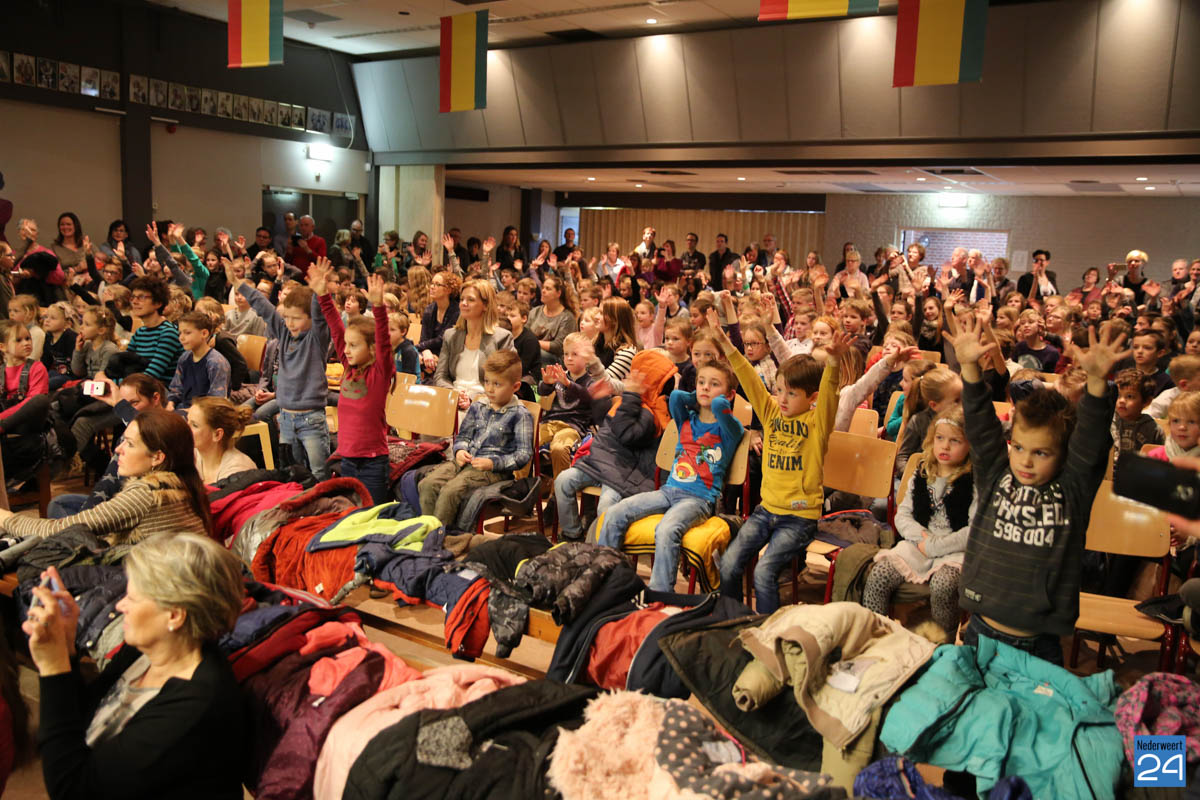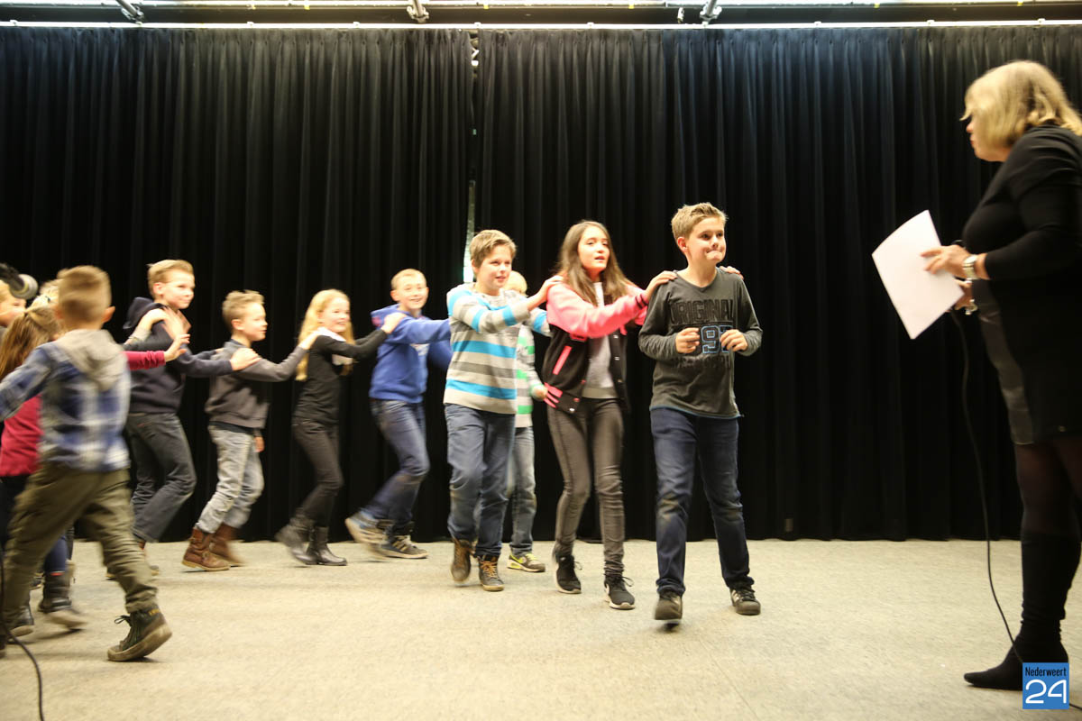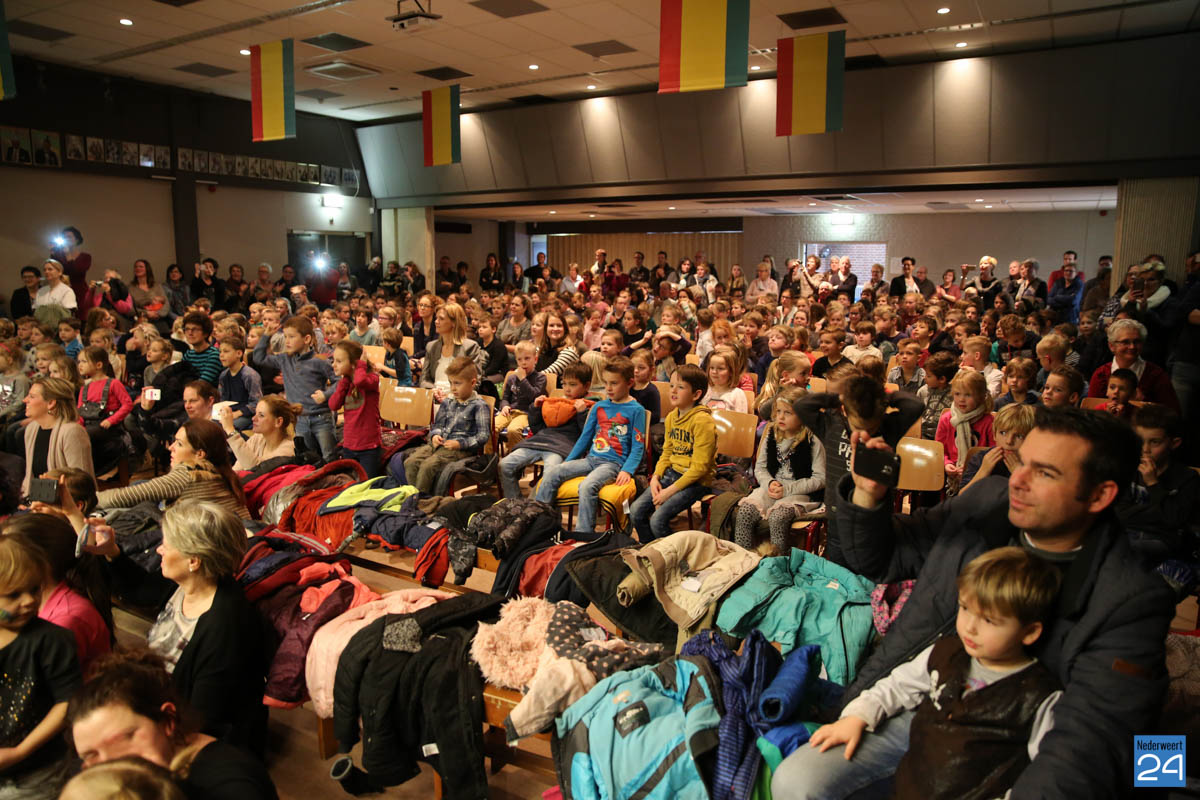 Kwartaalafsluiting Klimop Nederweert-15Basisschool De Klimop uit Nederweert heeft vandaag in een bomvolle Pinnenhof en onder toeziend oog van wethouder Henk Geraats, het certificaat “Gezonde School”  in het thema Bewegen en Sport onthuld tijdens de “kwartaalafsluiting” in de Pinnenhof in Nederweert.