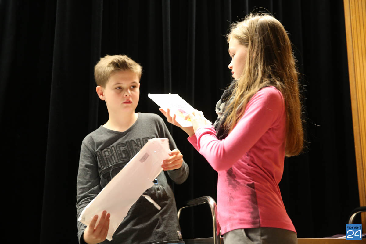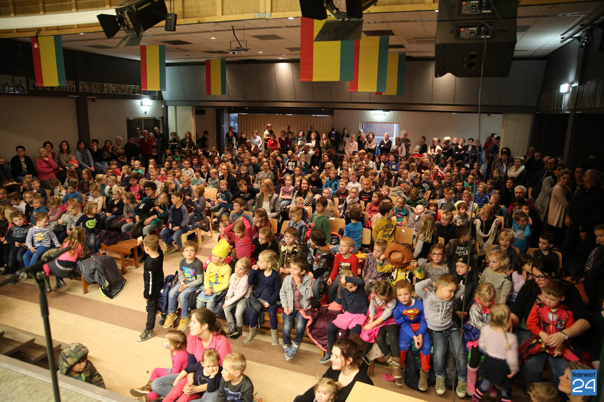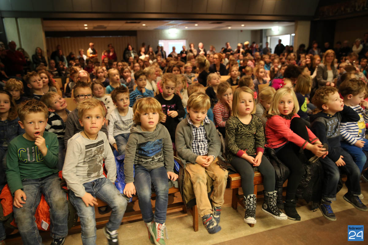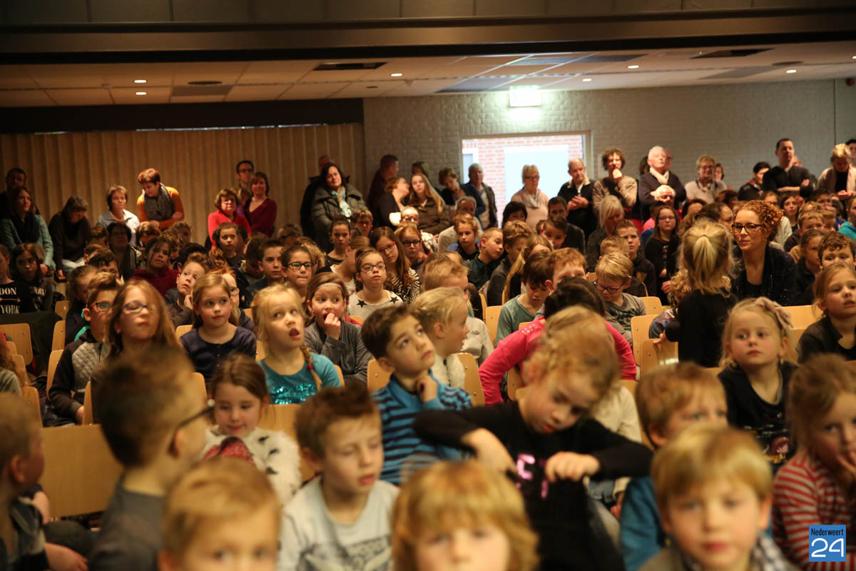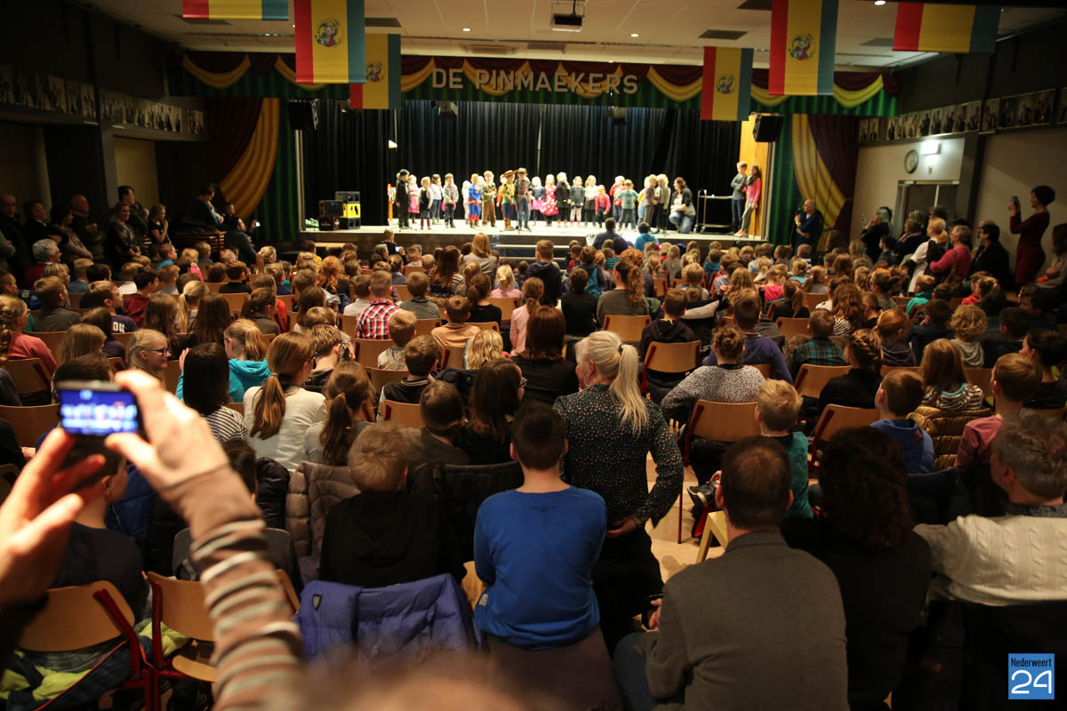Kwartaalafsluiting Klimop Nederweert-15Basisschool De Klimop uit Nederweert heeft vandaag in een bomvolle Pinnenhof en onder toeziend oog van wethouder Henk Geraats, het certificaat “Gezonde School”  in het thema Bewegen en Sport onthuld tijdens de “kwartaalafsluiting” in de Pinnenhof in Nederweert.