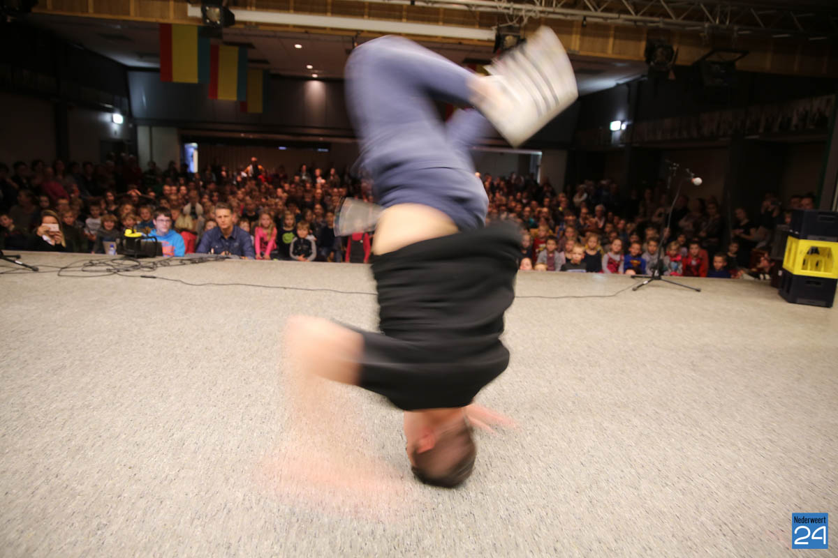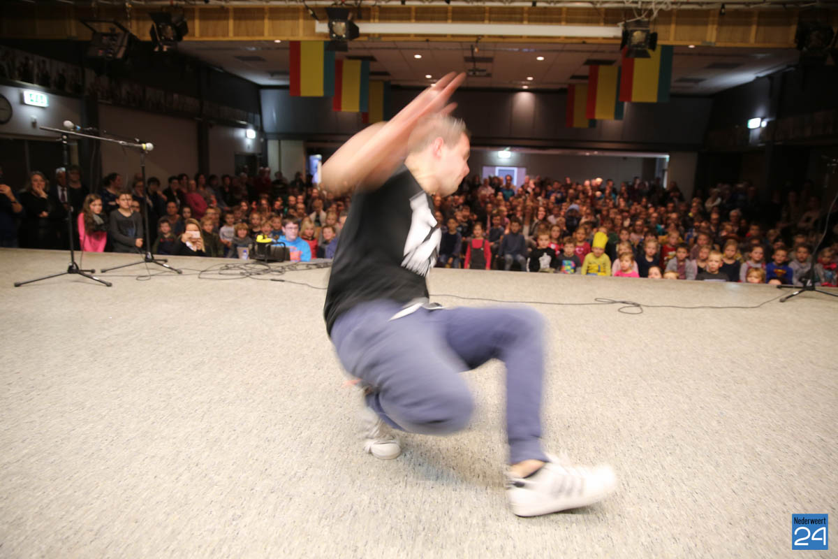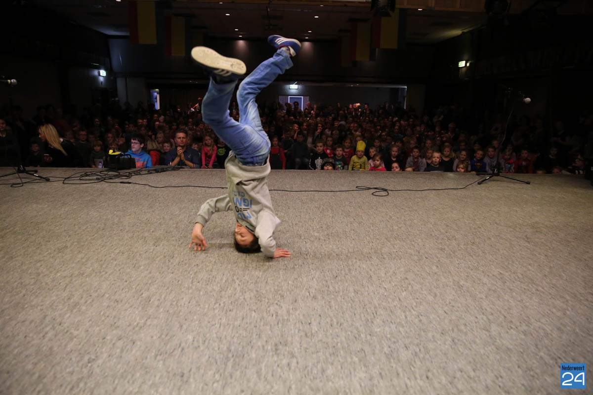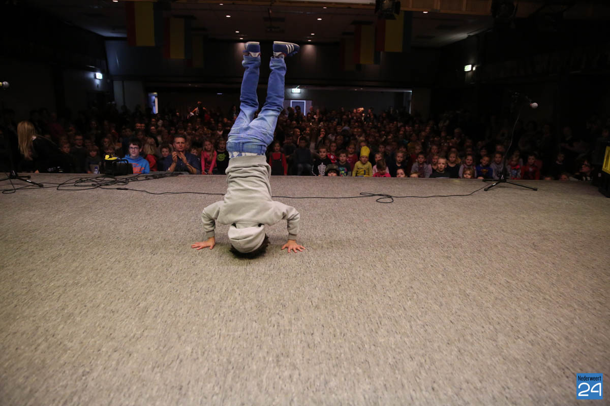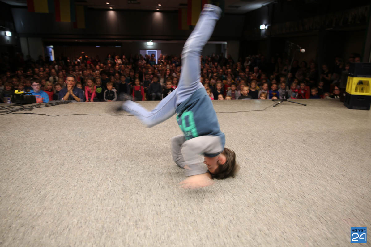 Kwartaalafsluiting Klimop Nederweert-15Basisschool De Klimop uit Nederweert heeft vandaag in een bomvolle Pinnenhof en onder toeziend oog van wethouder Henk Geraats, het certificaat “Gezonde School”  in het thema Bewegen en Sport onthuld tijdens de “kwartaalafsluiting” in de Pinnenhof in Nederweert.