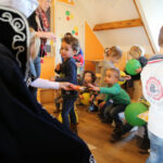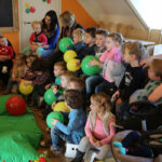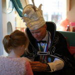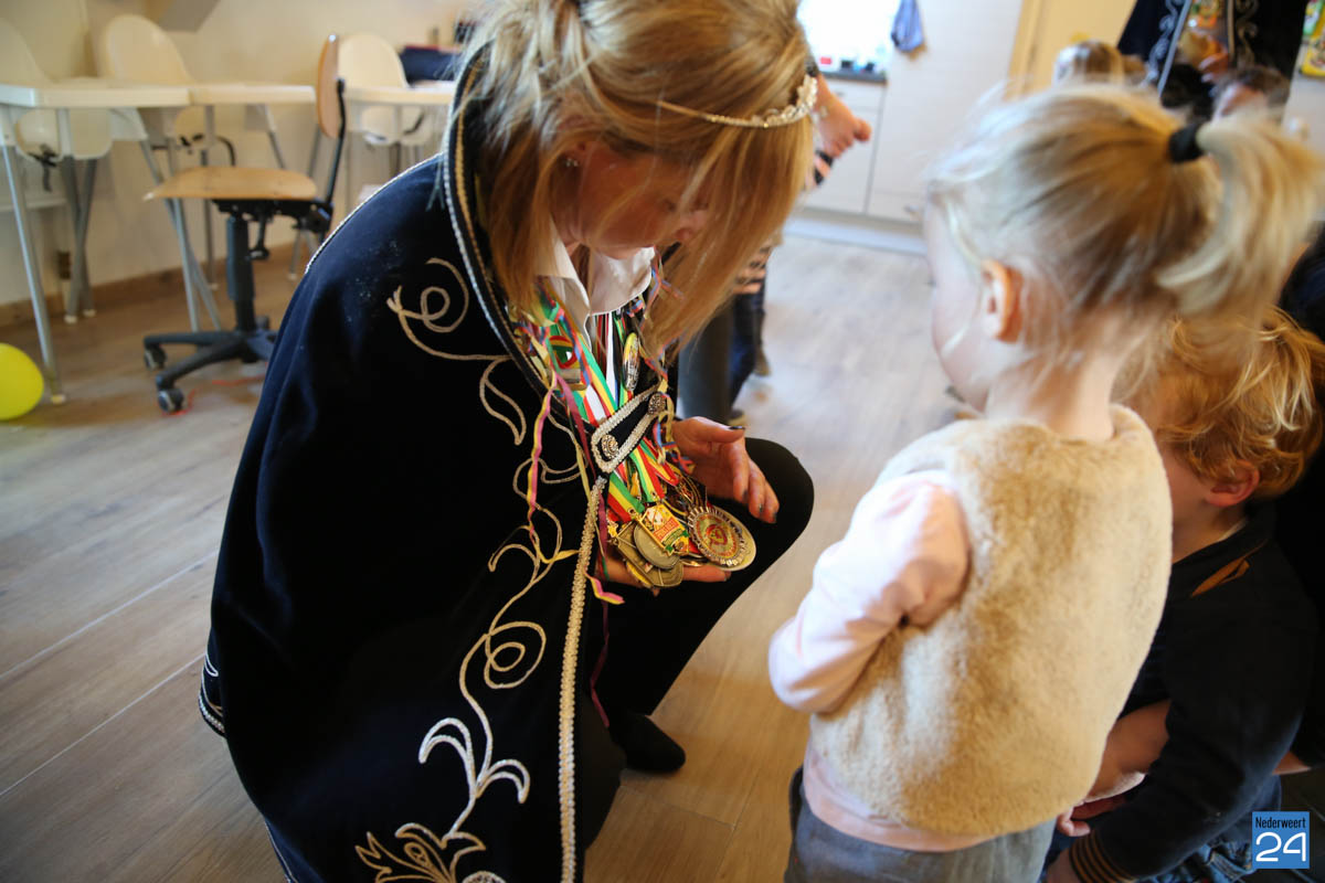 De kinderen vonden het spannend om de prins en prinses te gaan ontmoeten. ‘Roeëd, gael en greun’ werd gezongen om al vast in de stemming te komen. Bij binnenkomst van het prinsenpaar was het voor sommige net iets te spannend. Toen Prinses Chantal ging voorlezen was de kou uit de lucht en luisterden ze aandachtig. Na het verhaaltje was het tijd om buttons van het Prinsenpaar op te spelden en was er chips.