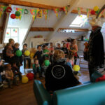 Als afsluiting werd de polonaise ingezet waarop één van de kids, al lopend, vroeg: “Waar gaan we heen?”Het was nog lang gezellig.
