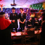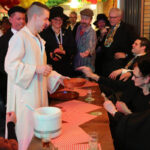 Daarna was het de beurt aan meneer pastoor en zijn misdienaartjes. Ondanks dat pastoor Bagge Geelke niet voldoende te drinken kreeg,heeft hij, zoals het een goed pastoor betaamt, toch de kerkelijk huwelijksvoltrekking voltooid. Beide spraken onder toeziend oog van familie, vrienden en bekenden, de “waat môt, det môt” woorden en de ringen werden aangeschoven. De bruidegom sloot af met de woorden: “Er moet meer gedronken worden!” Het was nog lang gezellig in café-zaal ’t Verschil in Nederweert-Eind.