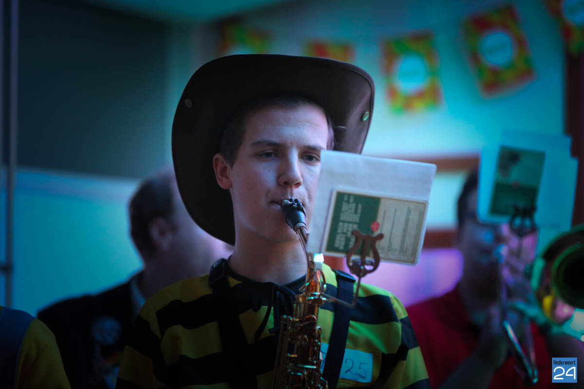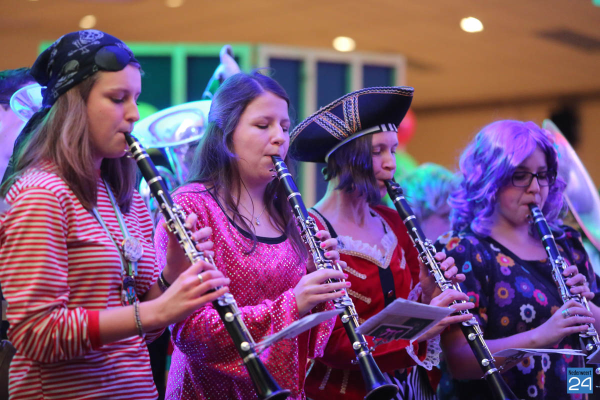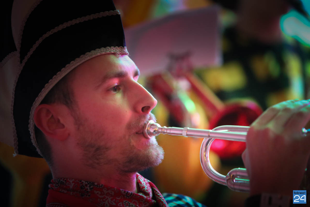 Stadsprins van Brunssum Gerards Alofs, jeugddirigent bij Harmonie St. Jospeh Nederweert, was speciaal voor vanavond met zijn gezelschap en dansmarietjes naar Nederweert gekomen. Ook V.V. de Pinmaekers en C.V.De Bengels waren voltallig aanwezig tijdens het jaarlijkse “veurpreuve” van de harmonie.