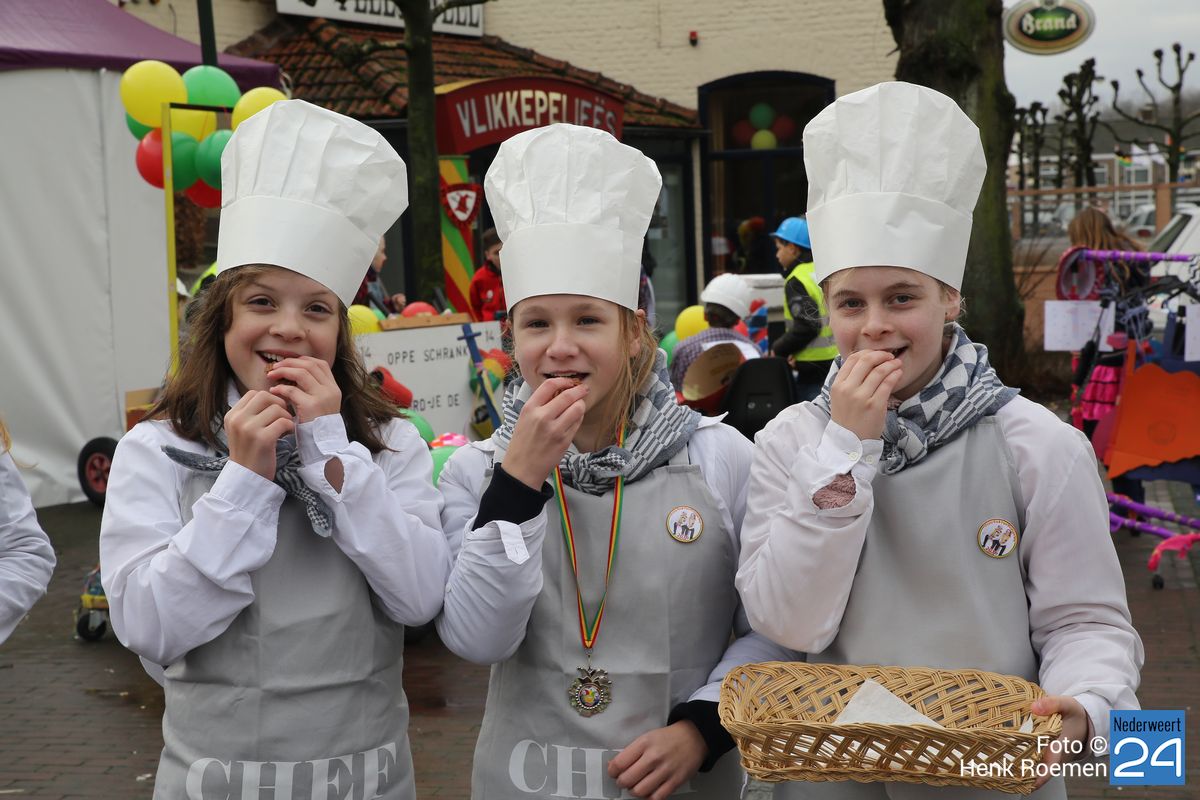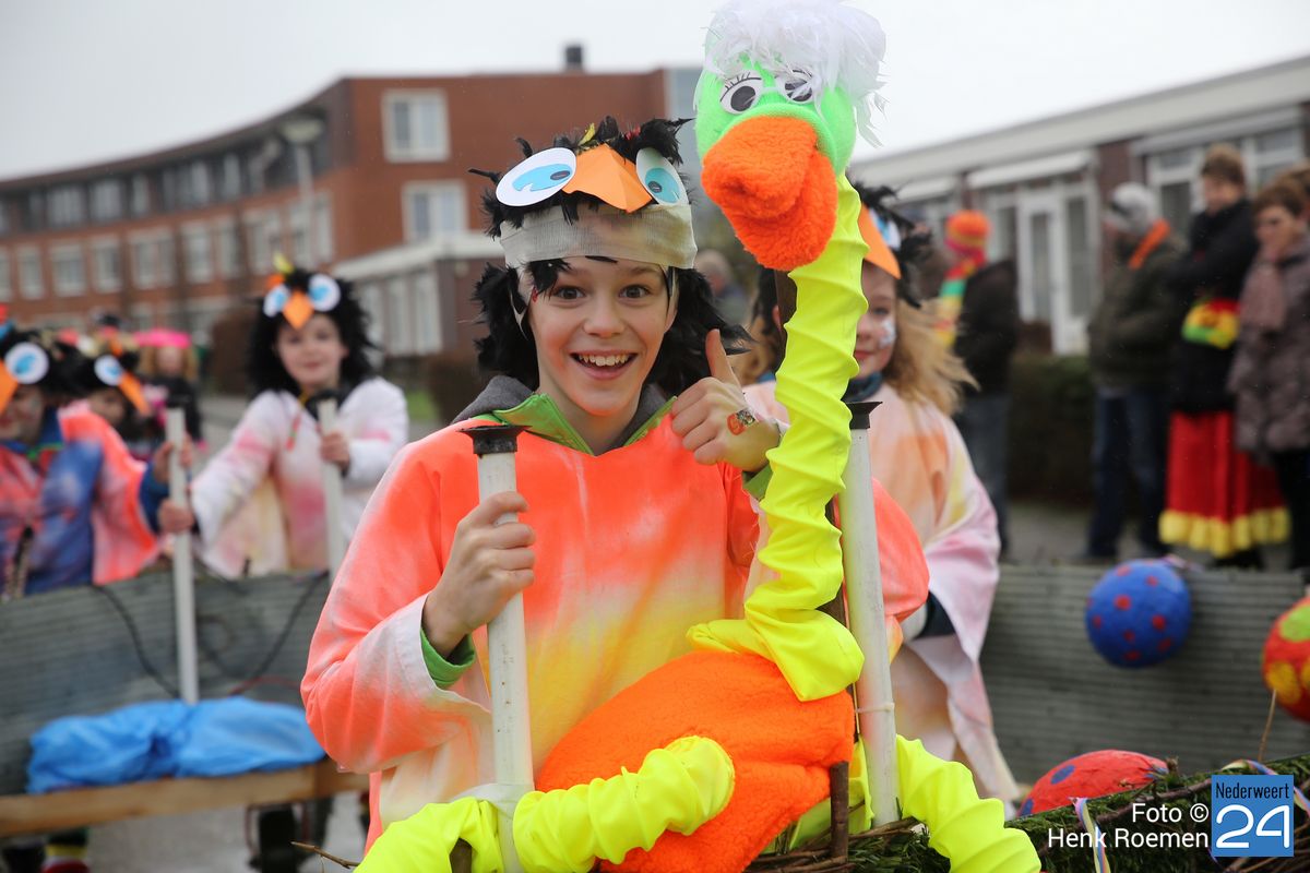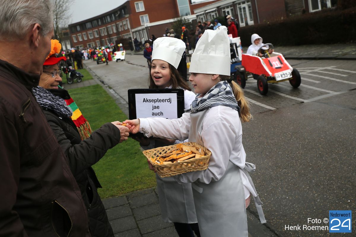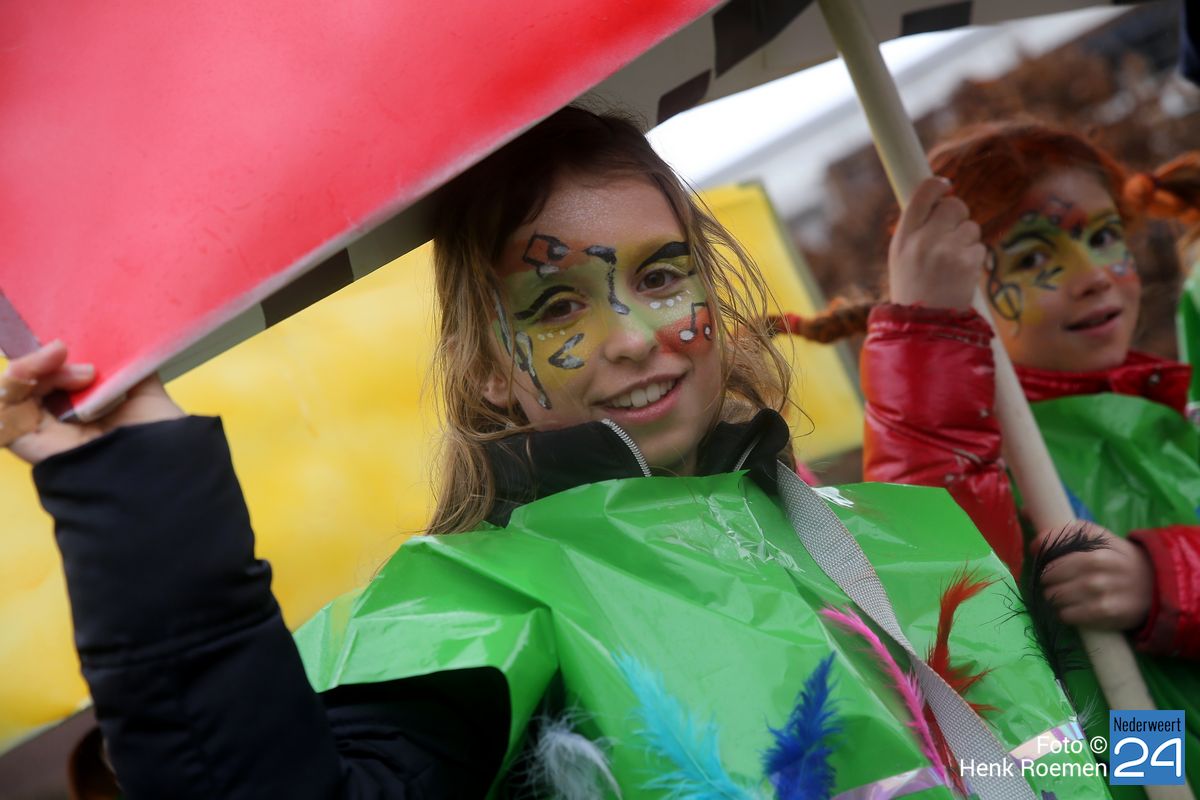 De kinderen genoten zichtbaar, omdat ze eindelijk hun mooie creaties aan het toegestroomde publiek mochten laten zien. Het was redelijk weer en dus waren er vele papa’s en mama’s, opa’s en oma’s en andere familieleden toegestroomd om de optocht met verschillende kleurrijke wagens en groepen te aanschouwen.