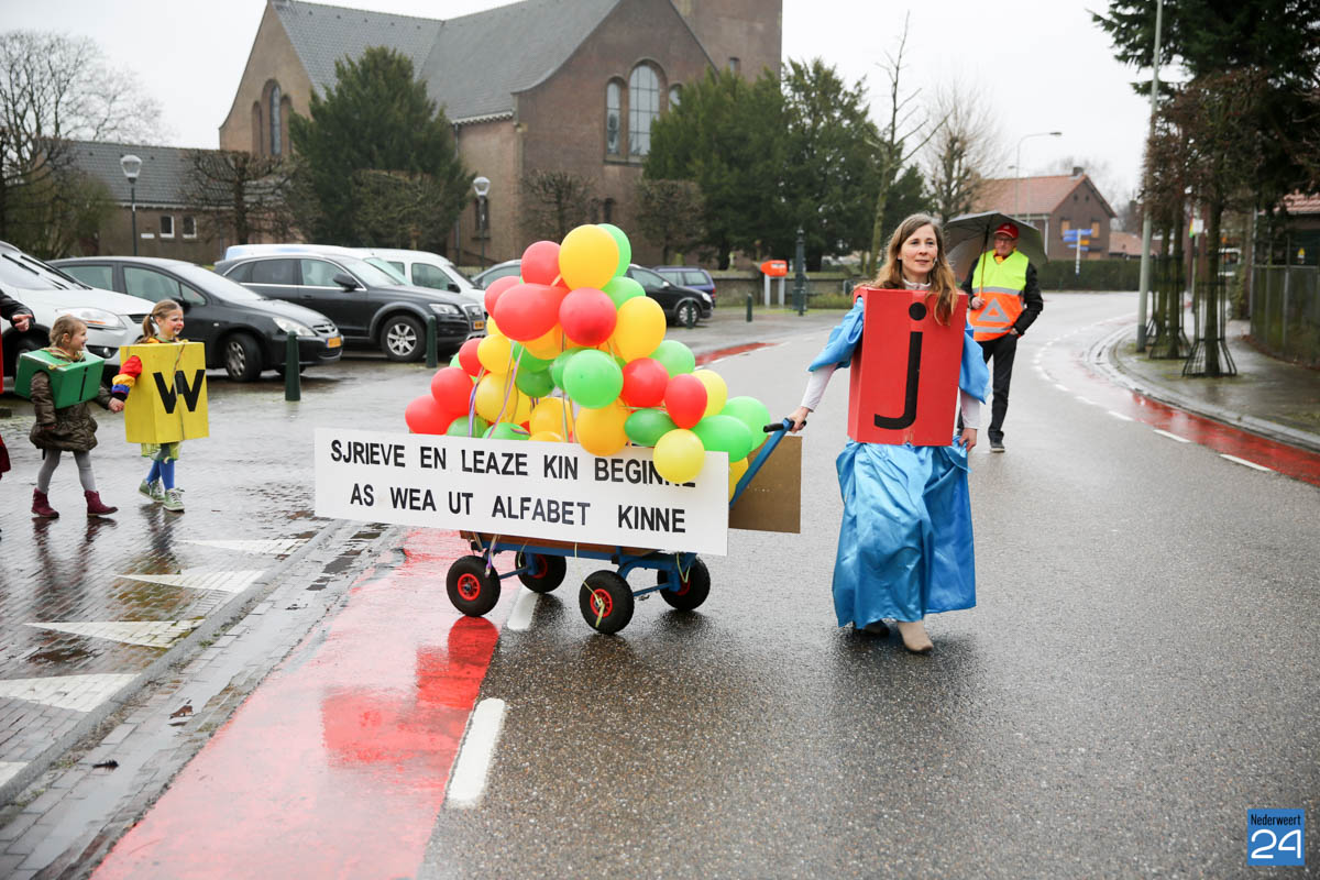 In totaal deden 16 groepen mee. Van het sombere, miezerige weer trokken de kinderen en het publiek  zich niets aan.