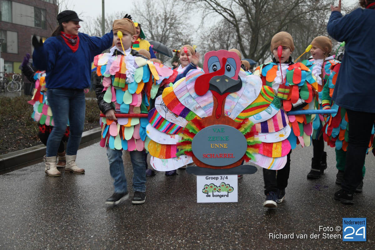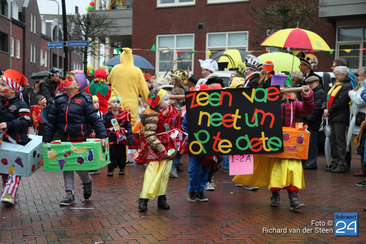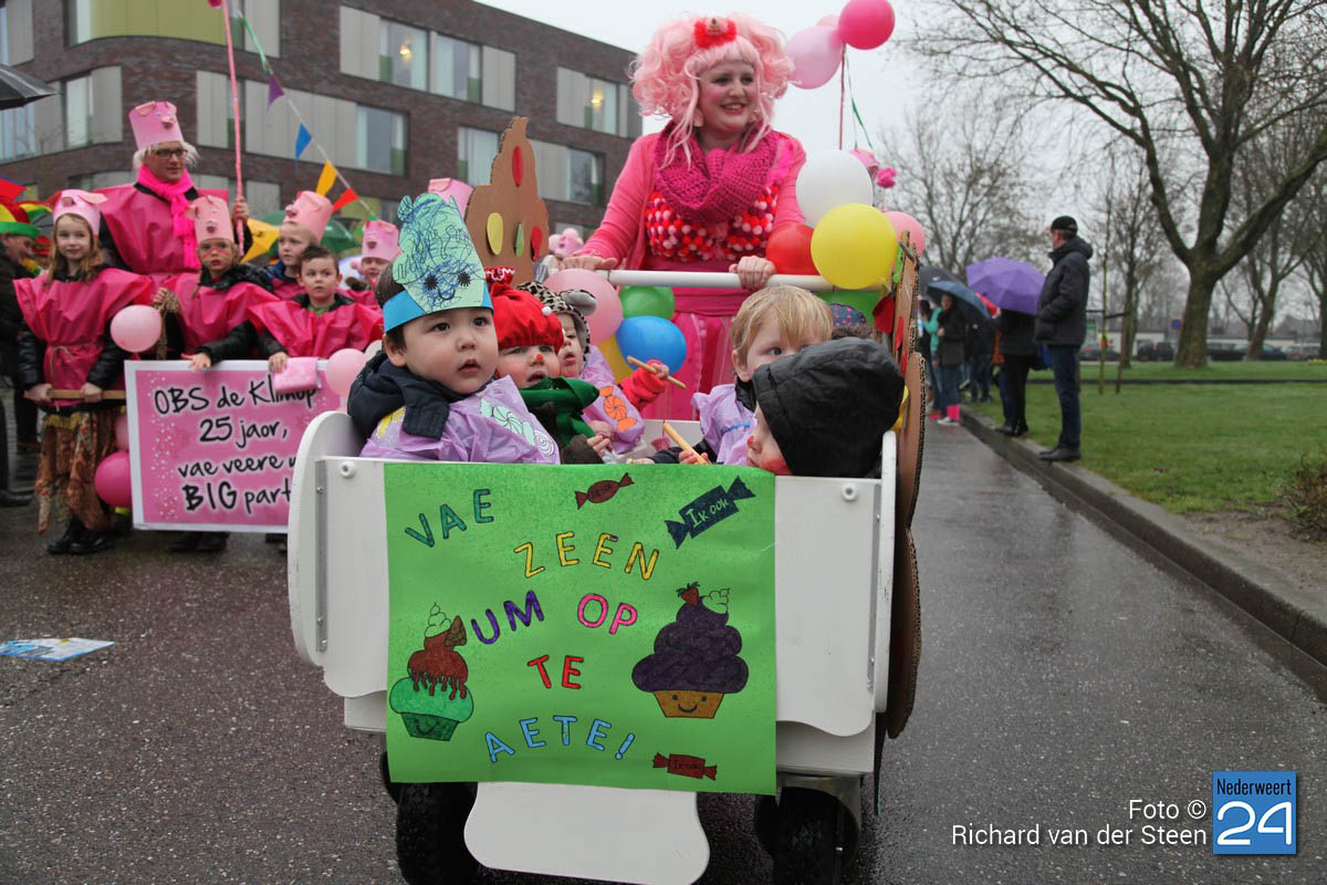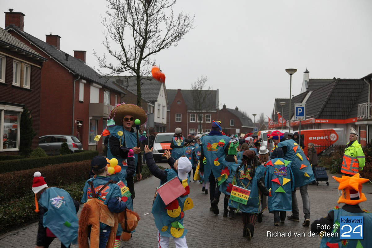 Ondanks het miezerige weer was het dolle pret voor de deelnemers en de toeschouwers. De kinderen hebben weer weken geknutseld voor de mooiste en/of lolligste creatie om hopelijk in de prijzen te vallen. Papier, kippengaas, behangplaksel of verf, werkelijk alles is de kast of uit de garage gehaald. Een prachtig optocht met ruim 30 deelnemende groepen. De carnaval is voor de jeugd van Nederweert fantastisch begonnen.