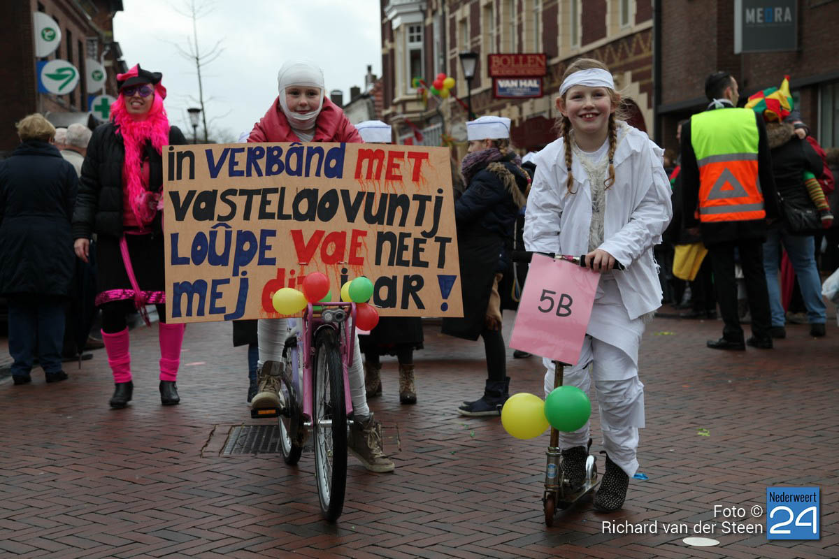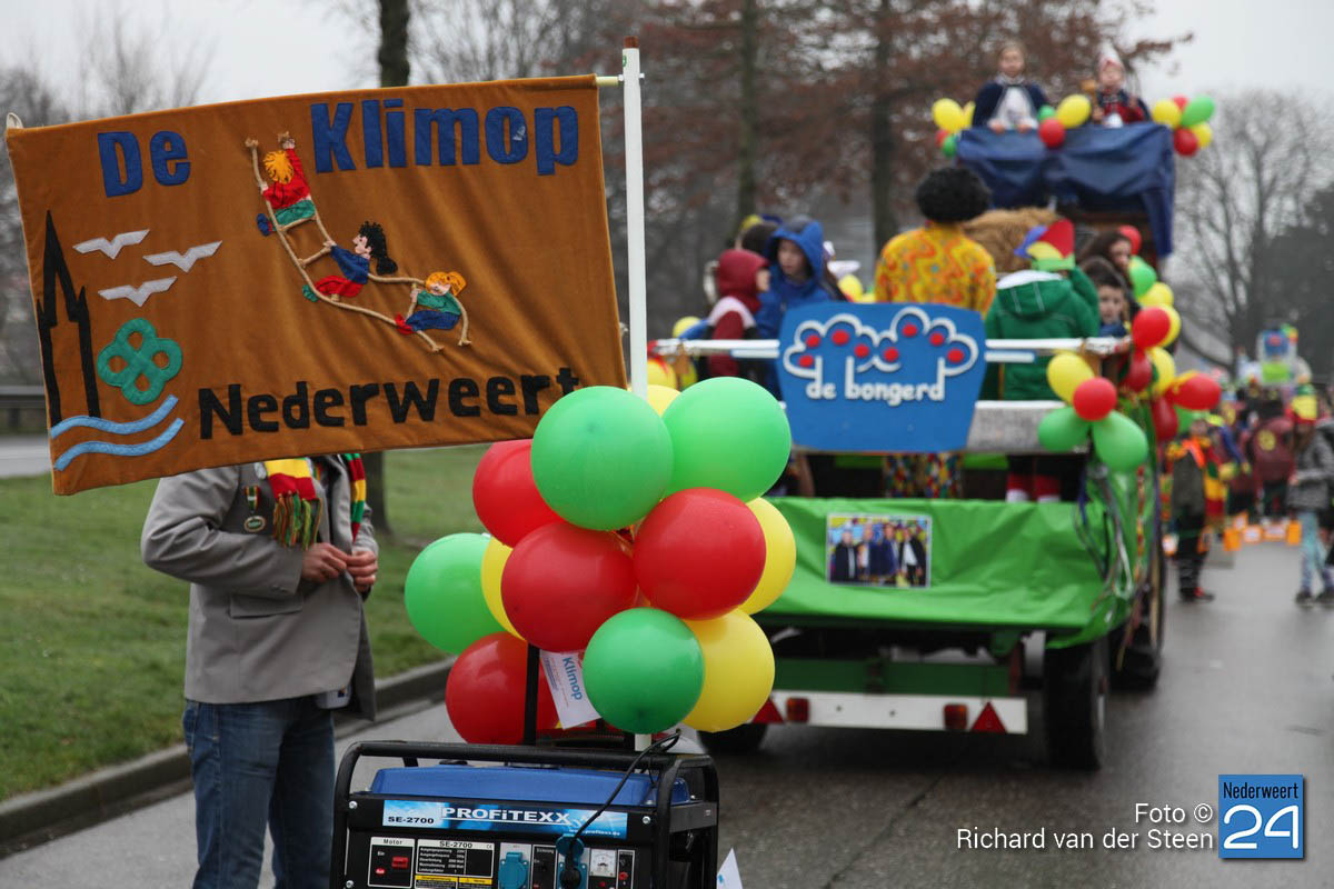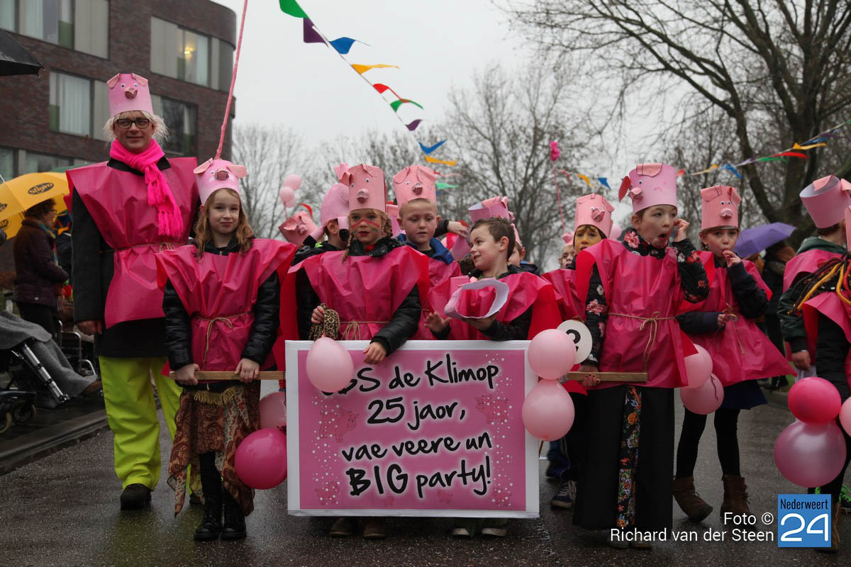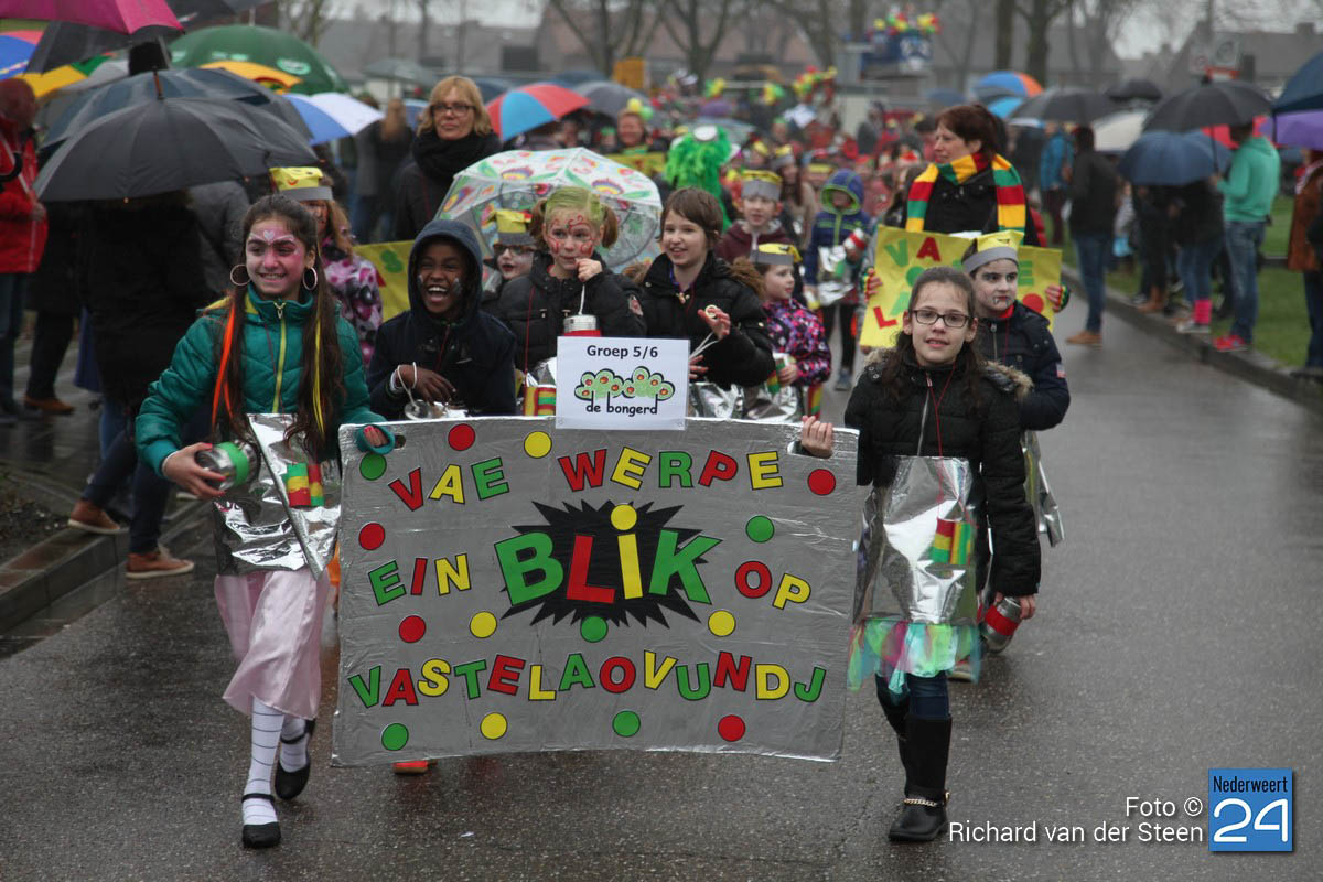 Ondanks het miezerige weer was het dolle pret voor de deelnemers en de toeschouwers. De kinderen hebben weer weken geknutseld voor de mooiste en/of lolligste creatie om hopelijk in de prijzen te vallen. Papier, kippengaas, behangplaksel of verf, werkelijk alles is de kast of uit de garage gehaald. Een prachtig optocht met ruim 30 deelnemende groepen. De carnaval is voor de jeugd van Nederweert fantastisch begonnen.