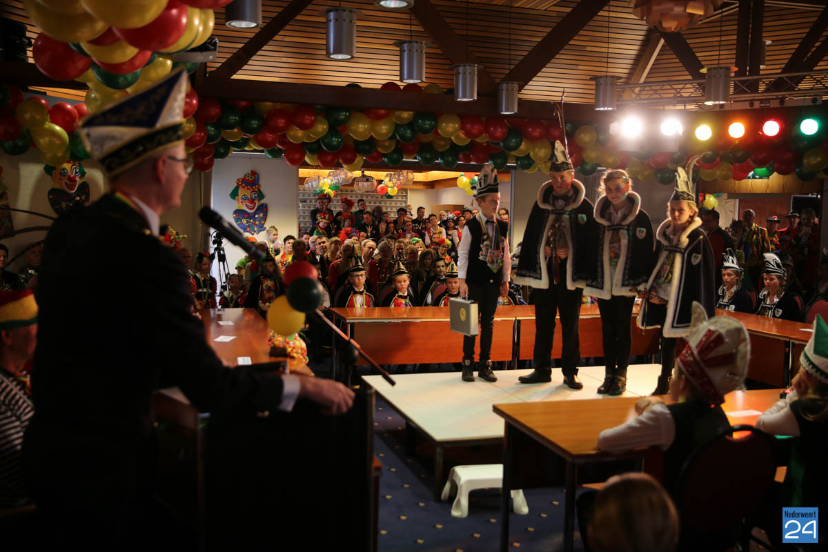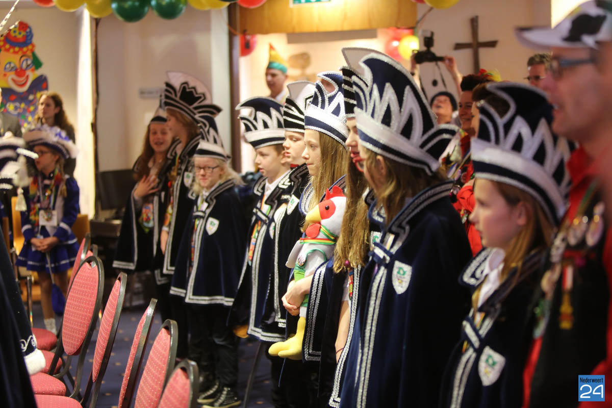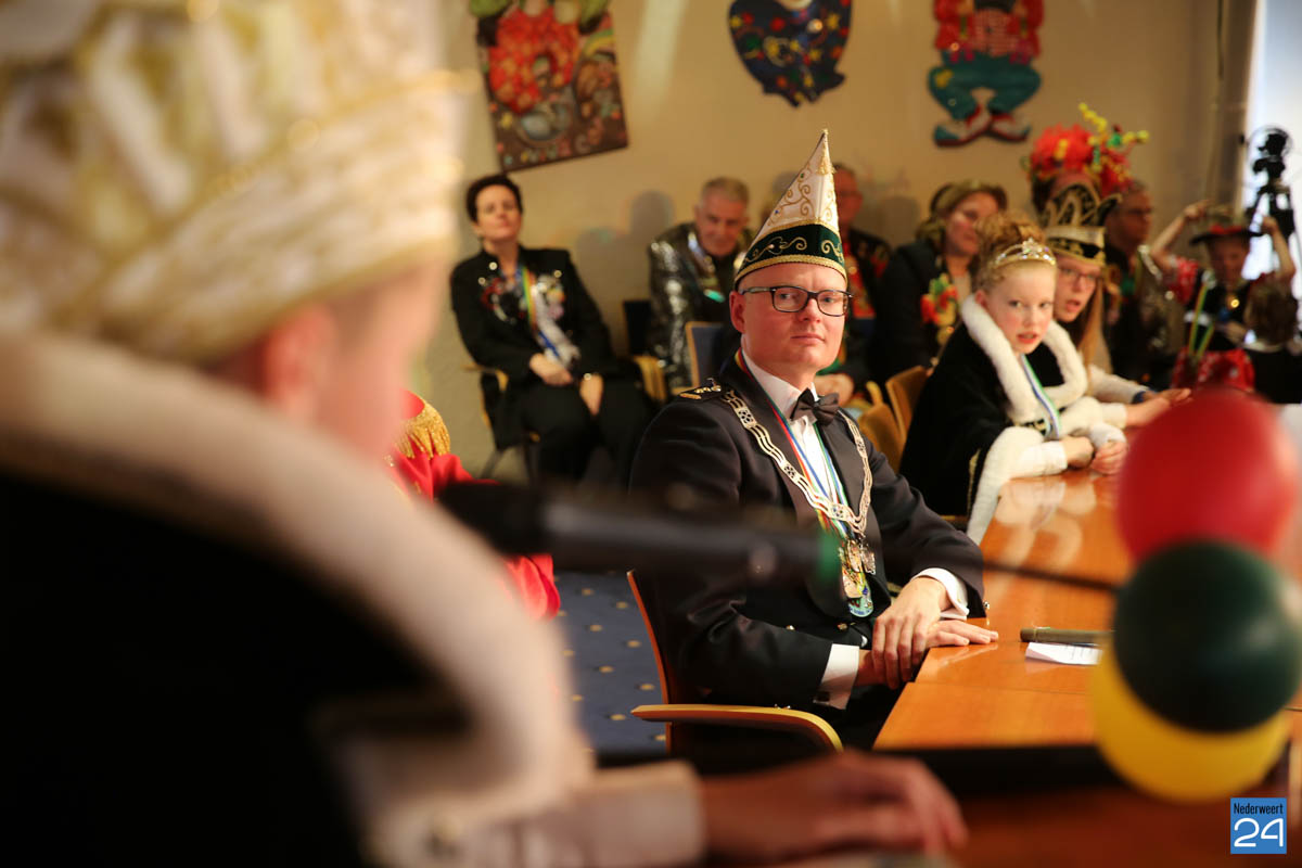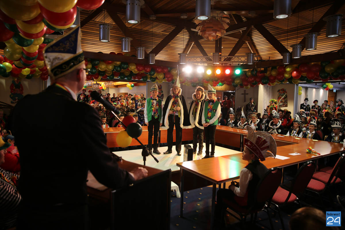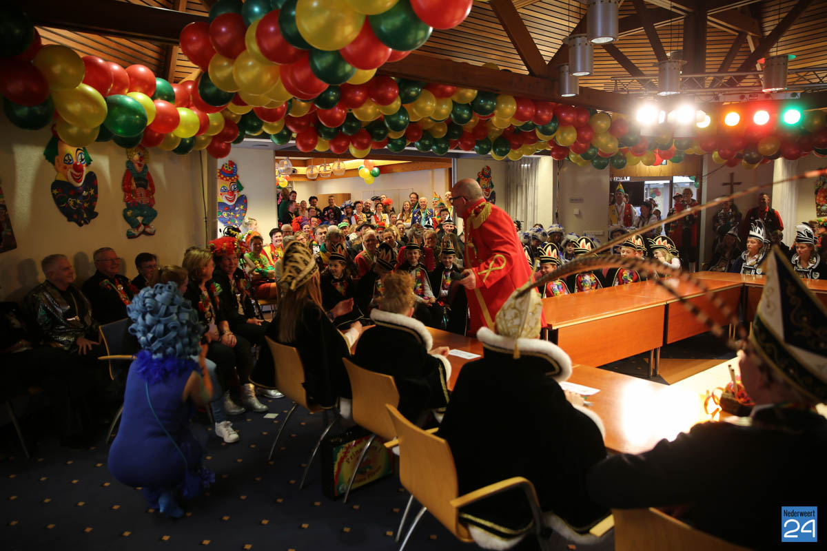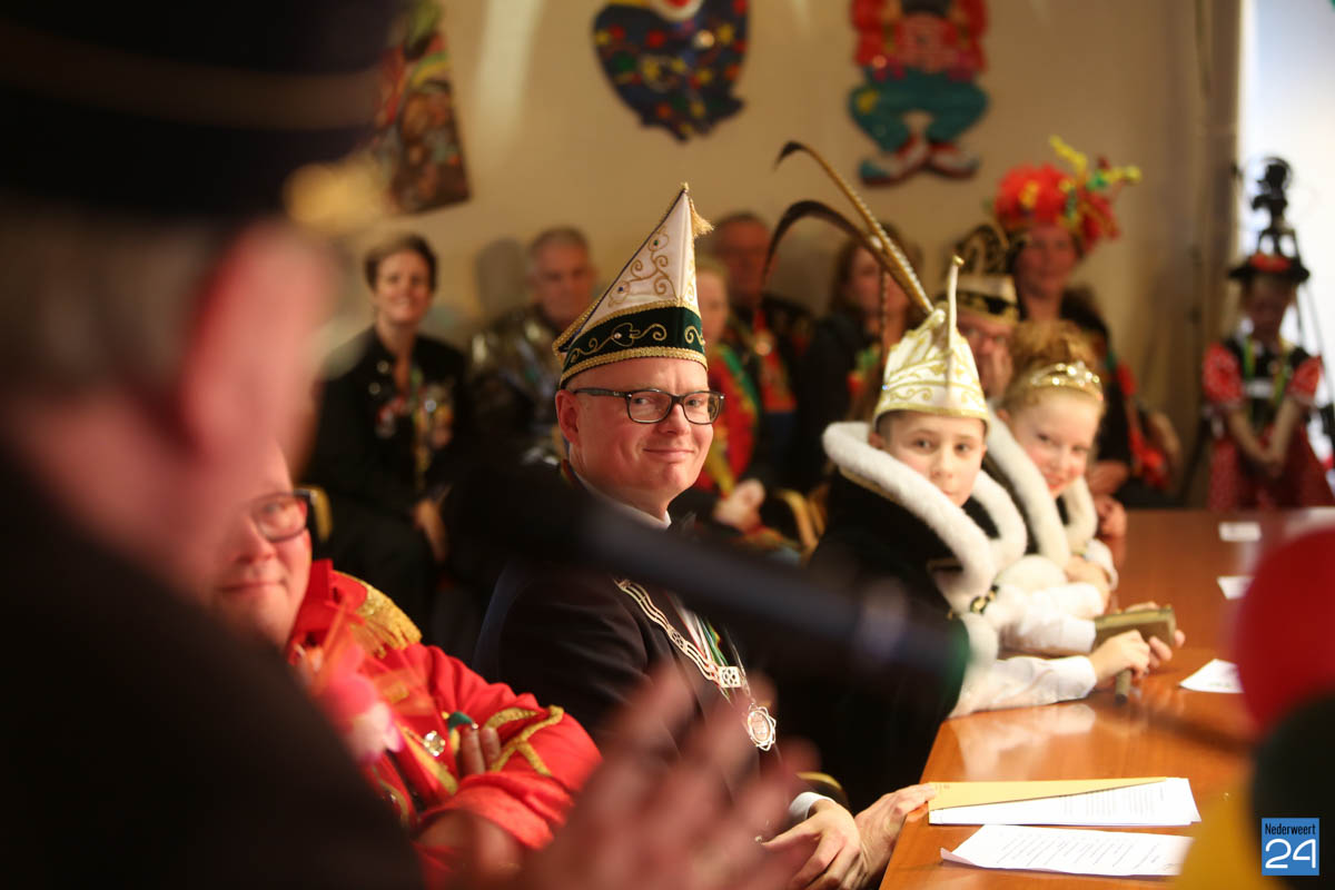 Zaterdagavond kwamen De Bengels, De Piepkukes, De Pinmaekers en De Vlikkestaekers met hun gevolg naar de Kolderzaal van het gemeentehuis in Nederweert om gezamenlijk de “Vastelaovendj” te openen. Na een kort woord van ceremoniemeester Giel Bruijnaers sprak Opperpin Henk Evers de aanwezigen toe en werd, ook al was het voor sommige moeilijk, één complet van het Limburgs volkslied gezongen. Niemand had nog wat te drinken dus iedereen kon gewoon zijn bierviltje omdraaien, daar stond de tekst op.