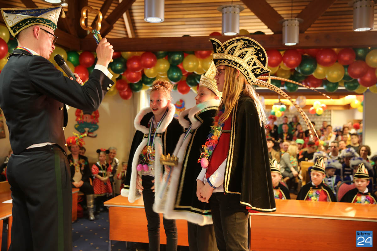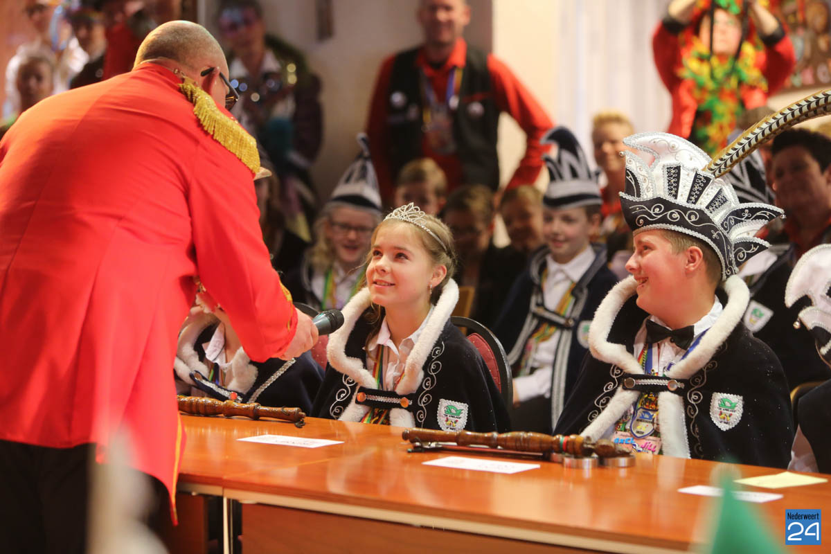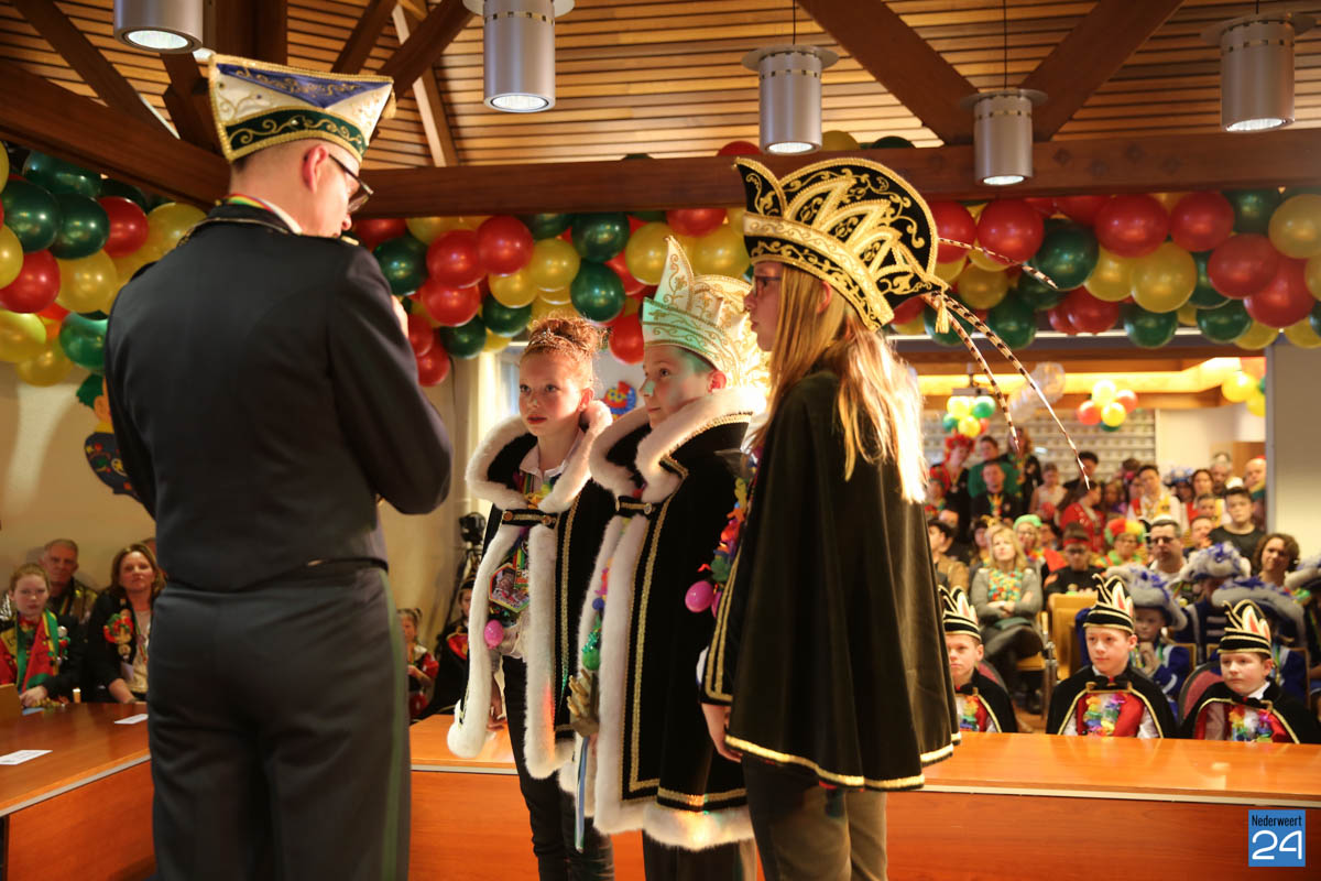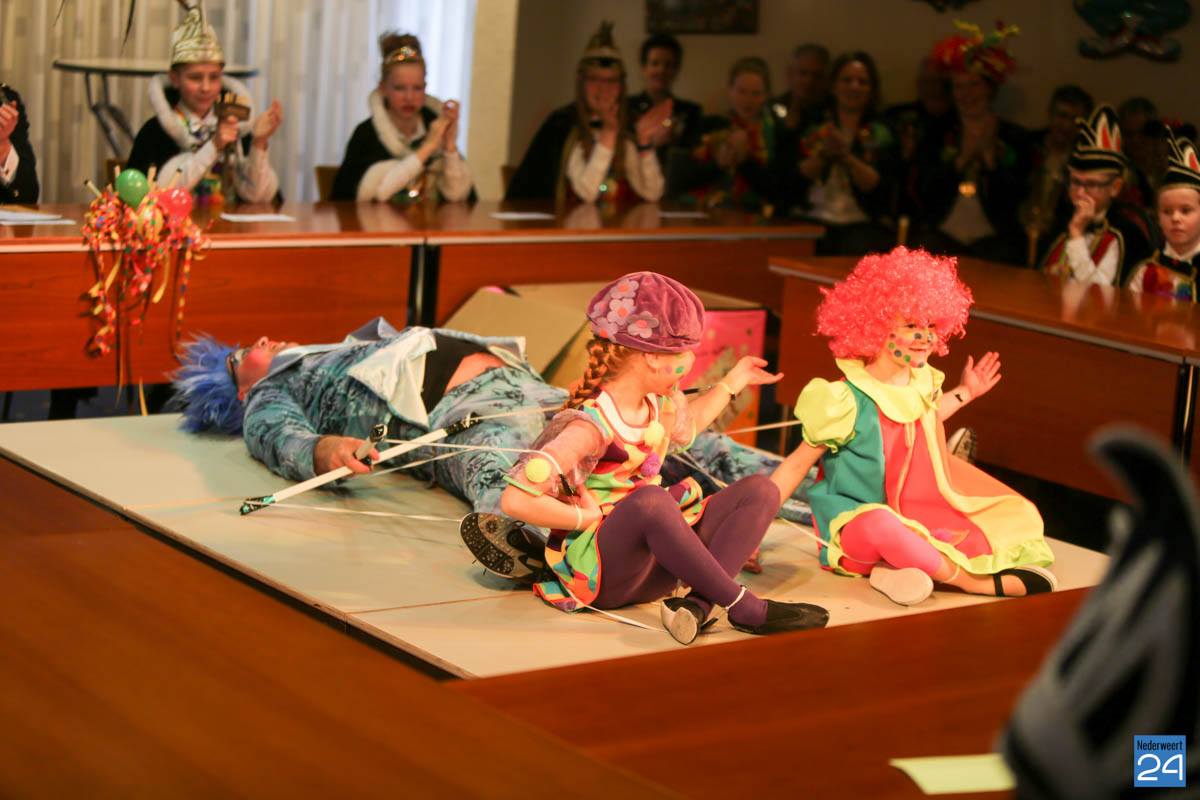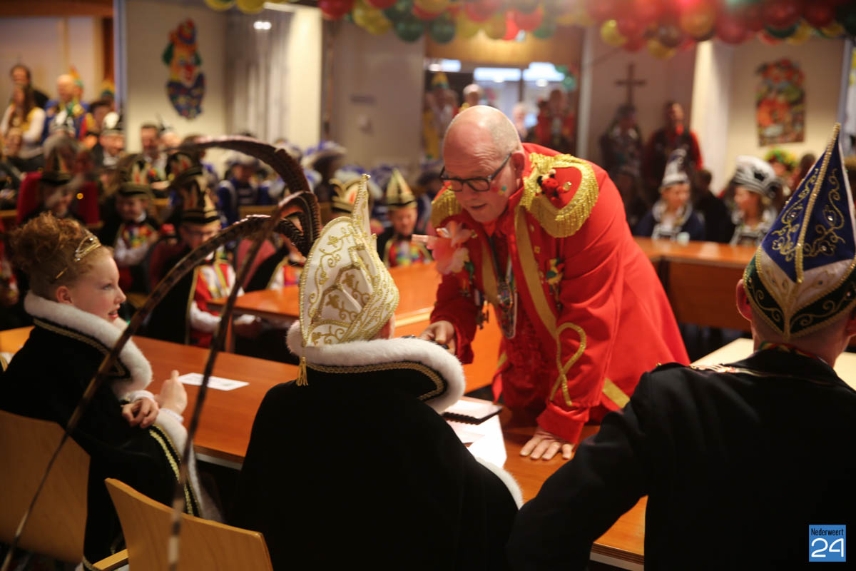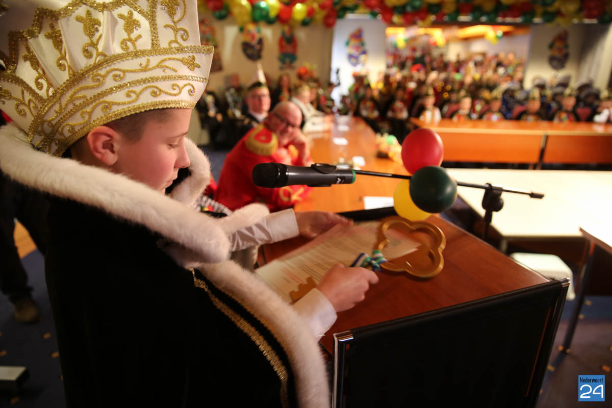 Zaterdagavond kwamen De Bengels, De Piepkukes, De Pinmaekers en De Vlikkestaekers met hun gevolg naar de Kolderzaal van het gemeentehuis in Nederweert om gezamenlijk de “Vastelaovendj” te openen. Na een kort woord van ceremoniemeester Giel Bruijnaers sprak Opperpin Henk Evers de aanwezigen toe en werd, ook al was het voor sommige moeilijk, één complet van het Limburgs volkslied gezongen. Niemand had nog wat te drinken dus iedereen kon gewoon zijn bierviltje omdraaien, daar stond de tekst op.