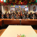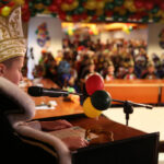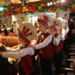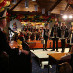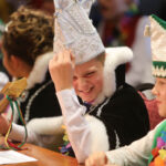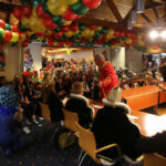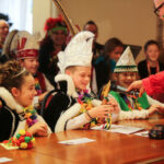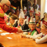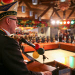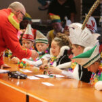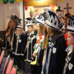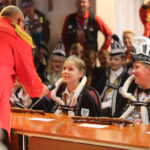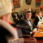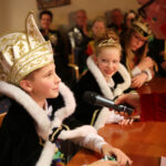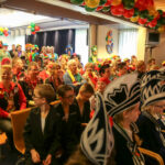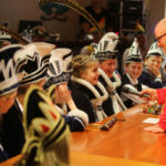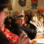 Sleuteloverdracht carnaval Nederweert 2016-65Zaterdagavond kwamen De Bengels, De Piepkukes, De Pinmaekers en De Vlikkestaekers met hun gevolg naar de Kolderzaal van het gemeentehuis in Nederweert om gezamenlijk de “Vastelaovendj” te openen. Na een kort woord van ceremoniemeester Giel Bruijnaers sprak Opperpin Henk Evers de aanwezigen toe en werd, ook al was het voor sommige moeilijk, één complet van het Limburgs volkslied gezongen. Niemand had nog wat te drinken dus iedereen kon gewoon zijn bierviltje omdraaien, daar stond de tekst op.
