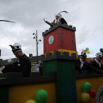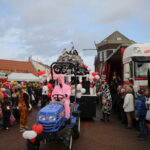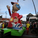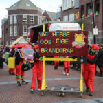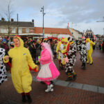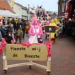 De eerste foto’s beloven niet veel goeds maar al snel veranderd een spookachtig horecaplein met regen, wind en een ware hoosbui in een gezellig plein met een briesje en zonnestralen. Ondanks de slechte voorspellingen waren de weergoden de carnavalsvierders dus toch nog redelijk goed gezind. Met een half uur vertraging en na een flinke stortbui ging de optocht droog van start en begon het zonnetje zelfs te schijnen nadat de eerste wagens over Brug 15 waren.