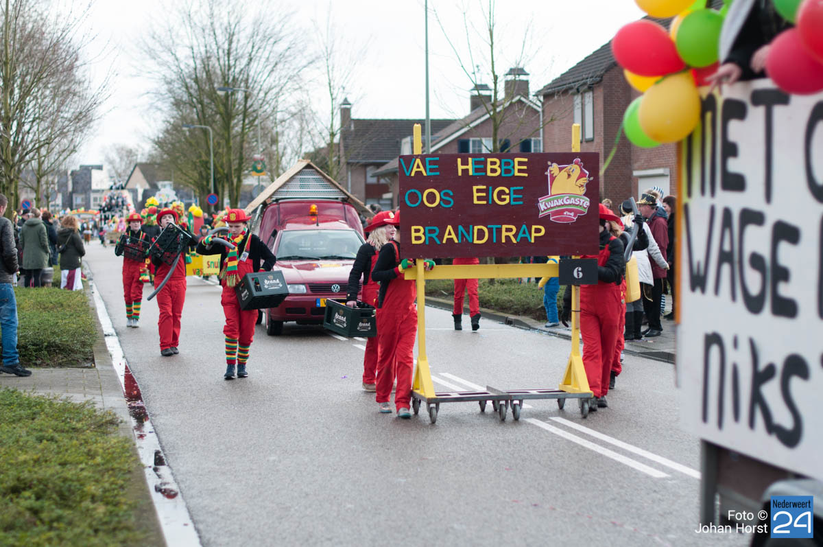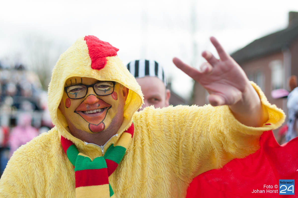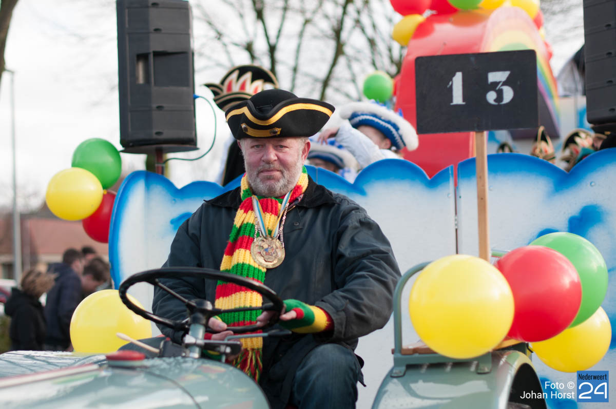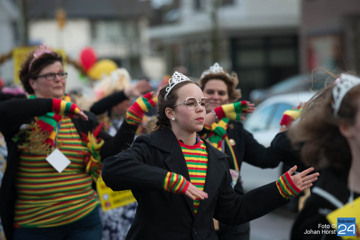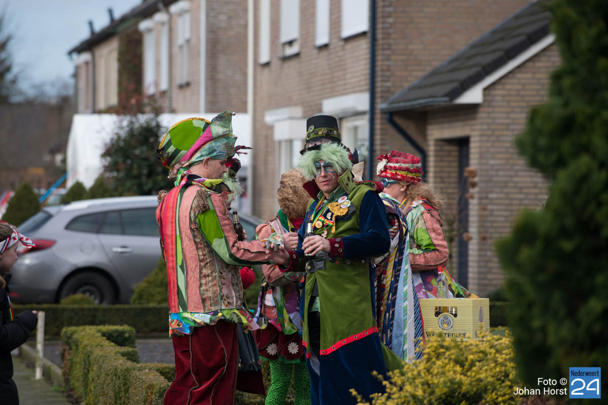 De mensen stroomden nog snel de straten op zodat het in de Brugstraat, Horecaplein, Geenenstraat en Loverstraat maar ook langs de rest van de route was het nog gezellig druk. Een paar wagens hebben helaas zelf de keuze gemaakt om niet mee te trekken. Een hiervan is de altijd succesvolle groep VV de Prullejoekels uit Nederweert-Eind. Zij durven het niet aan. Ook VV Gekkenwerk besloot, ondanks dat ze wel al naar Nederweert waren gekomen, niet mee te doen.
