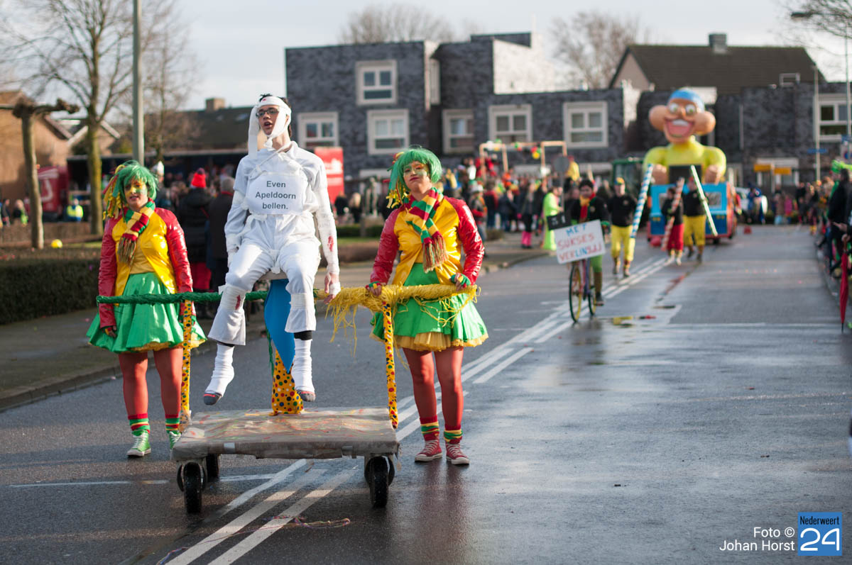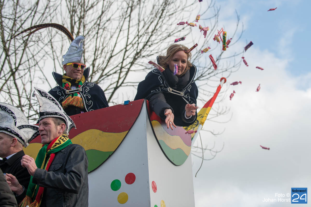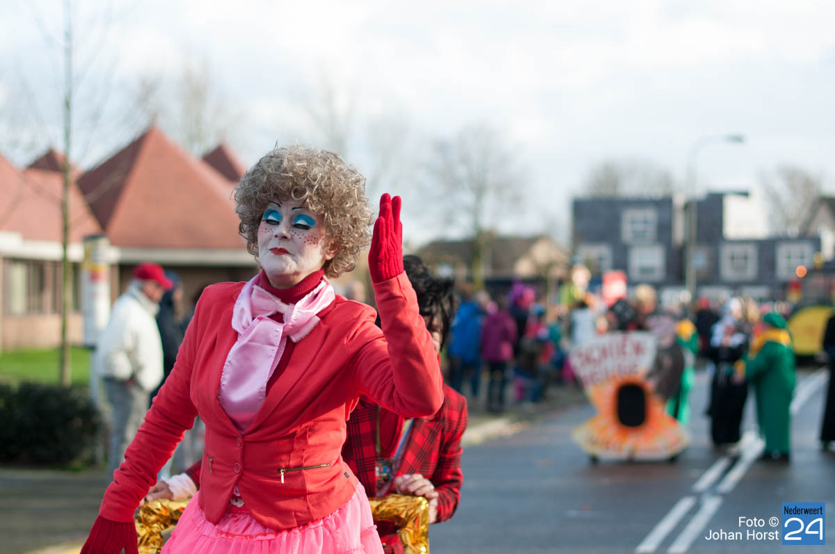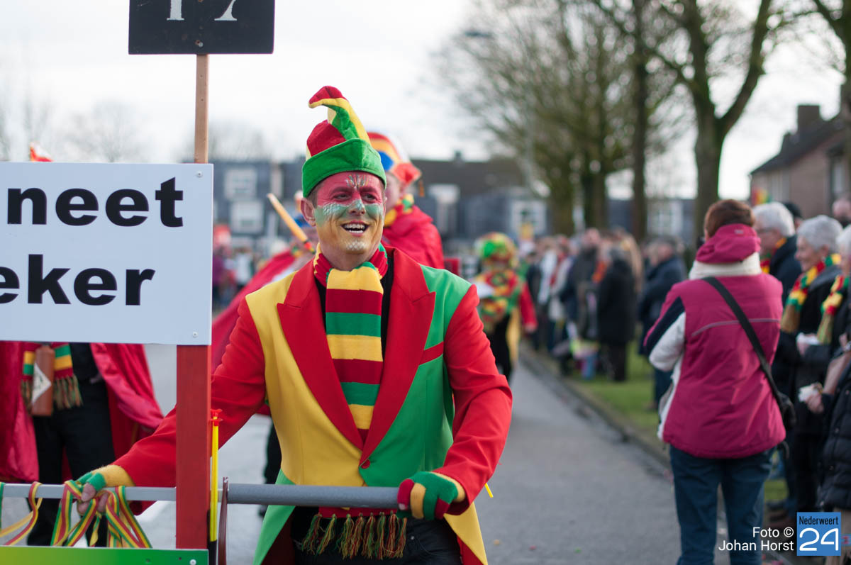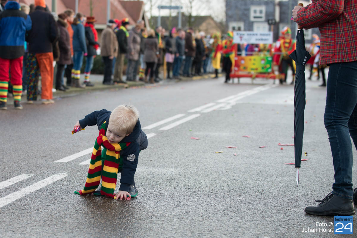 De mensen stroomden nog snel de straten op zodat het in de Brugstraat, Horecaplein, Geenenstraat en Loverstraat maar ook langs de rest van de route was het nog gezellig druk. Een paar wagens hebben helaas zelf de keuze gemaakt om niet mee te trekken. Een hiervan is de altijd succesvolle groep VV de Prullejoekels uit Nederweert-Eind. Zij durven het niet aan. Ook VV Gekkenwerk besloot, ondanks dat ze wel al naar Nederweert waren gekomen, niet mee te doen.
