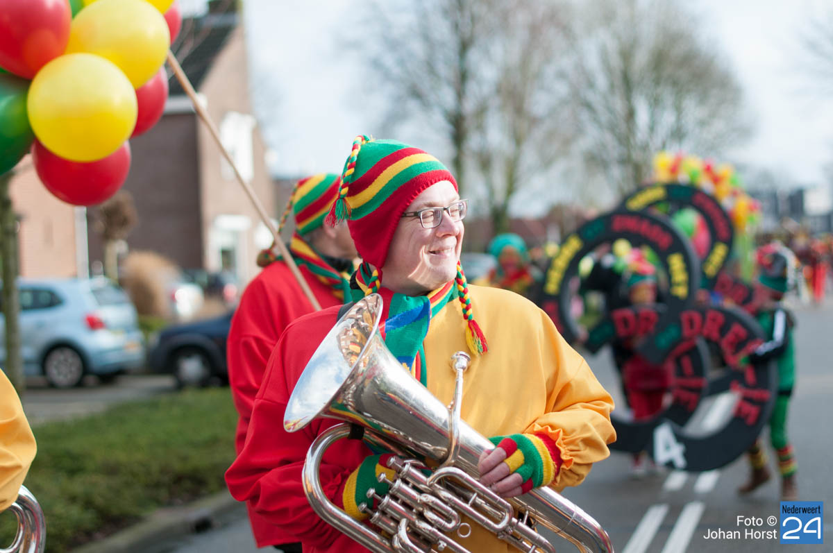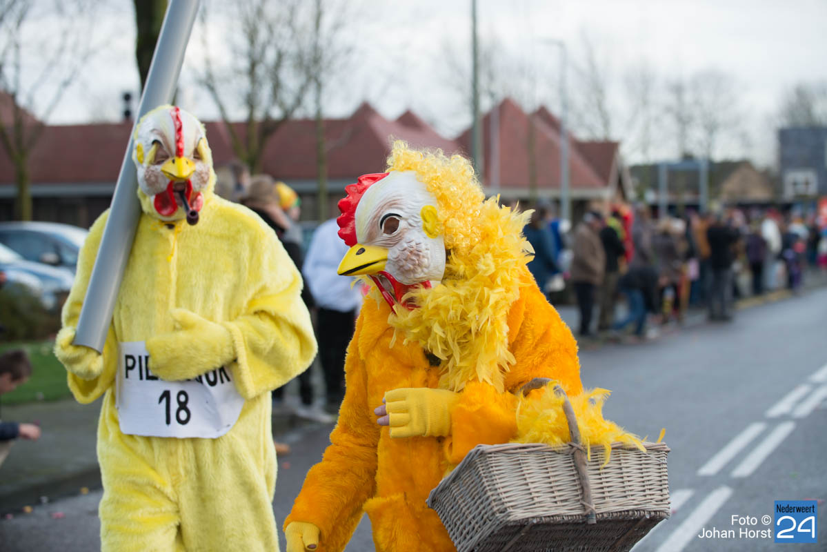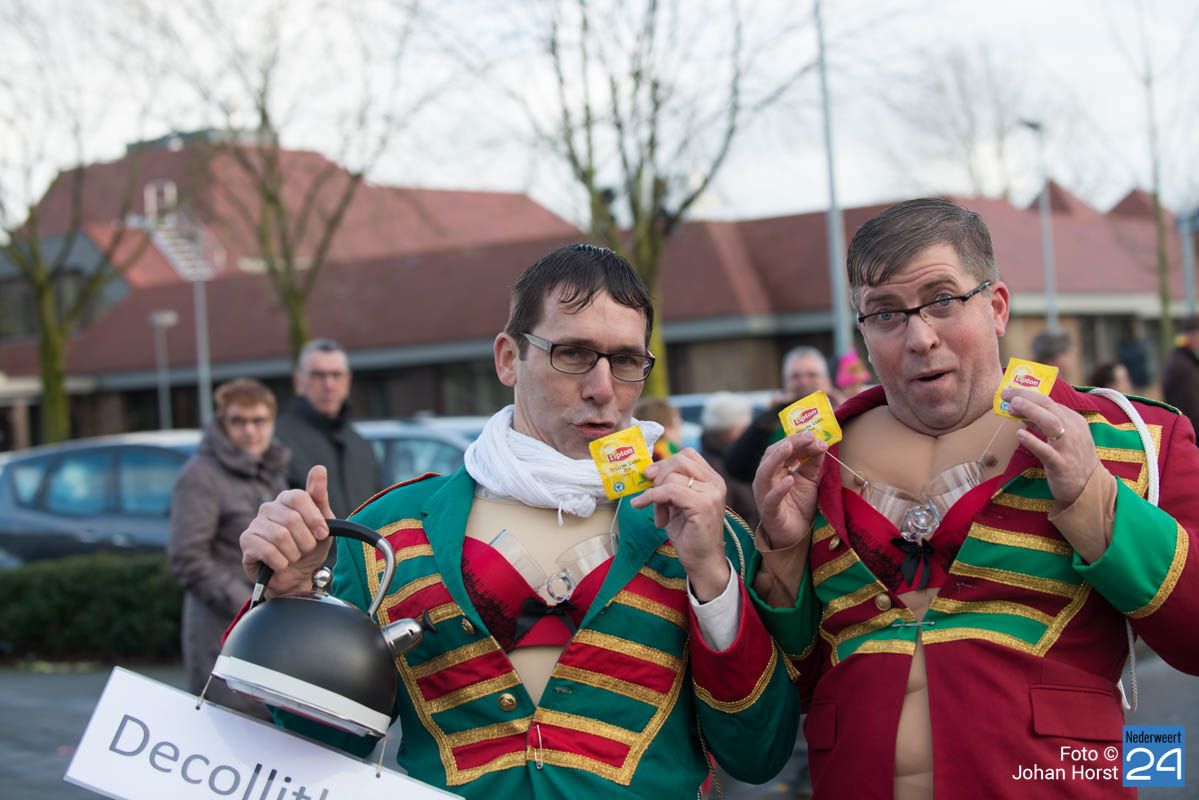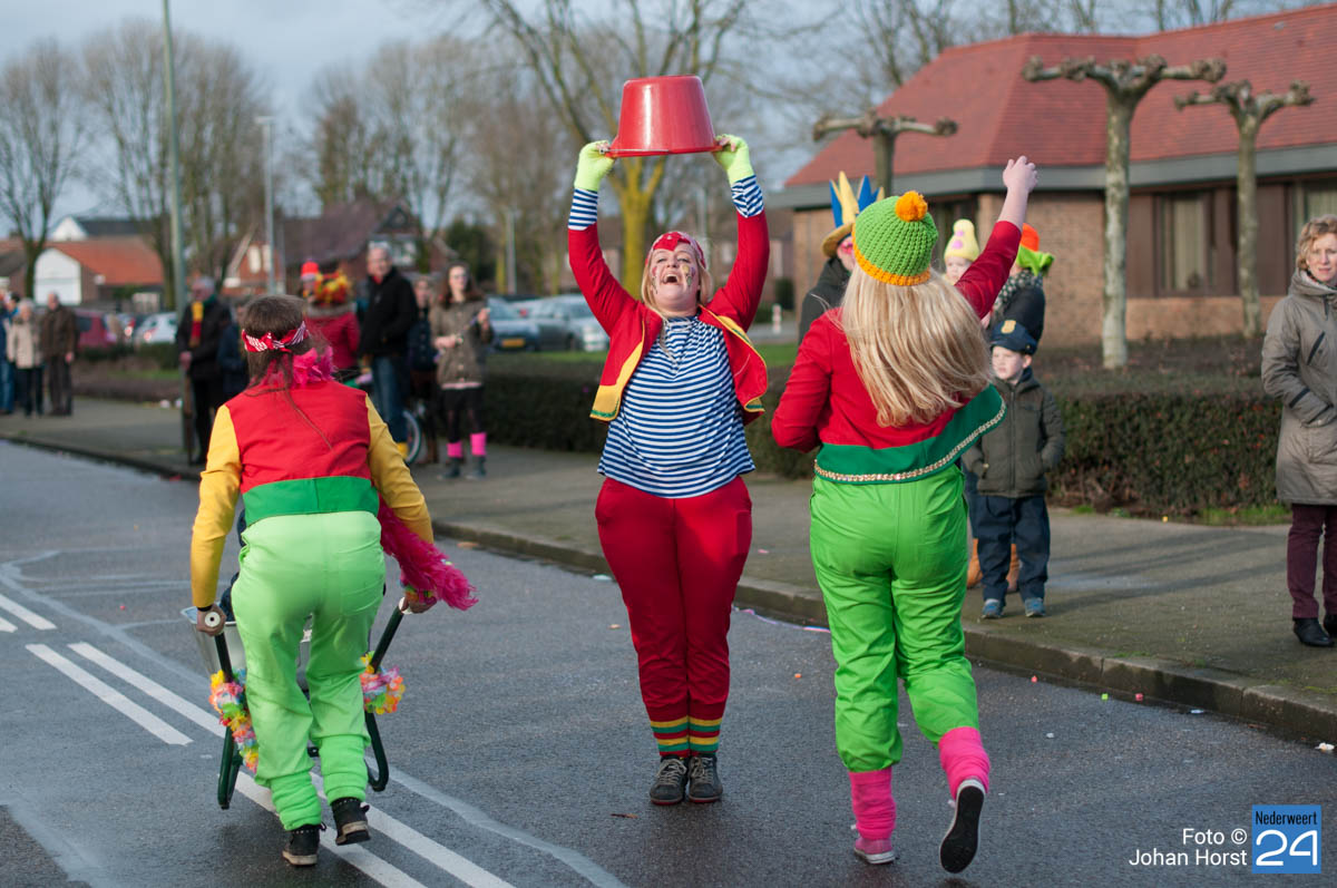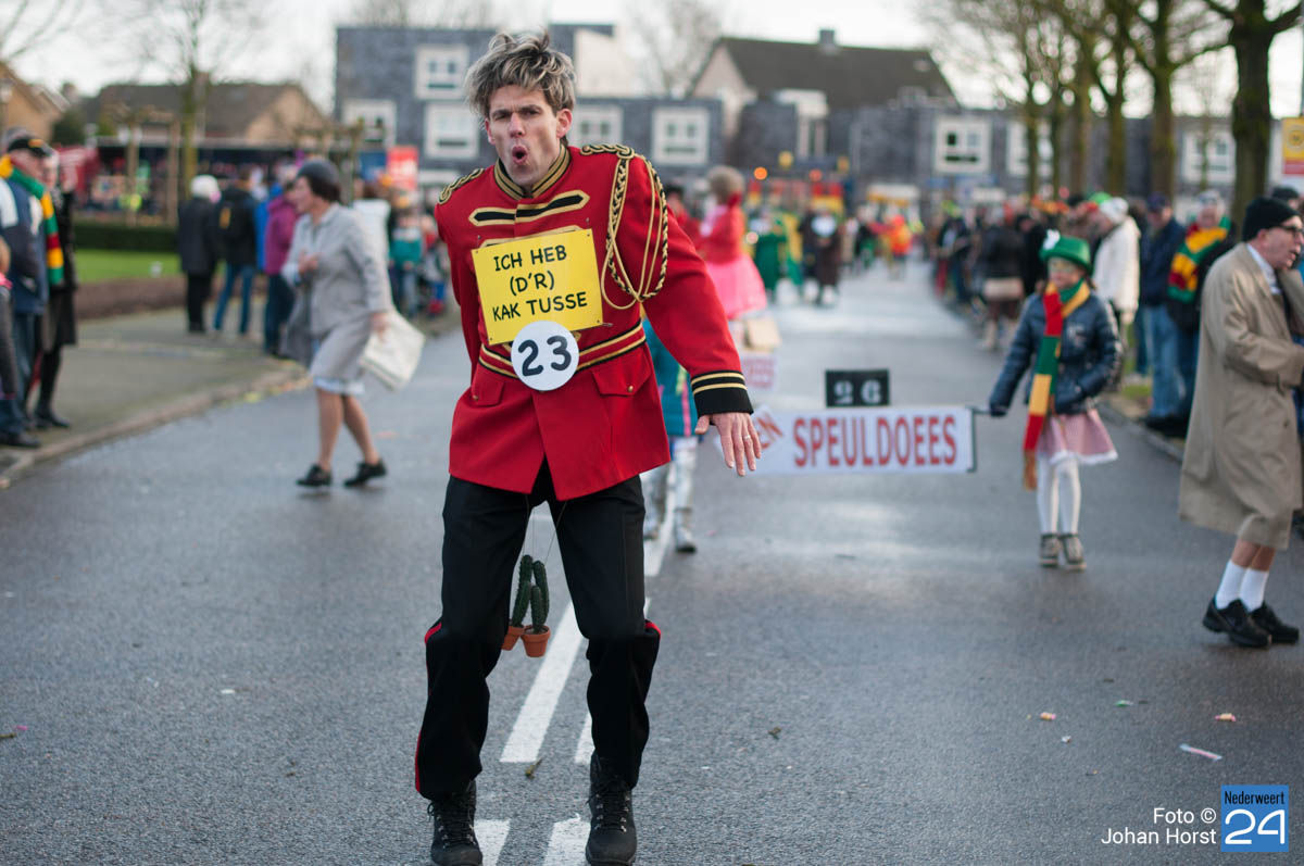 De mensen stroomden nog snel de straten op zodat het in de Brugstraat, Horecaplein, Geenenstraat en Loverstraat maar ook langs de rest van de route was het nog gezellig druk. Een paar wagens hebben helaas zelf de keuze gemaakt om niet mee te trekken. Een hiervan is de altijd succesvolle groep VV de Prullejoekels uit Nederweert-Eind. Zij durven het niet aan. Ook VV Gekkenwerk besloot, ondanks dat ze wel al naar Nederweert waren gekomen, niet mee te doen.