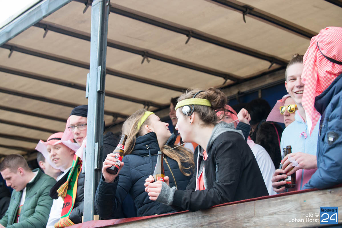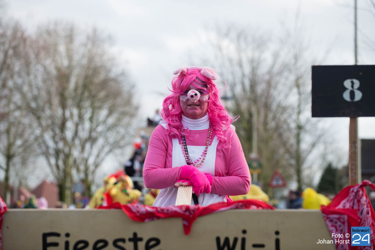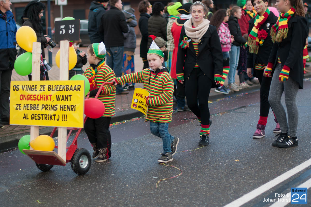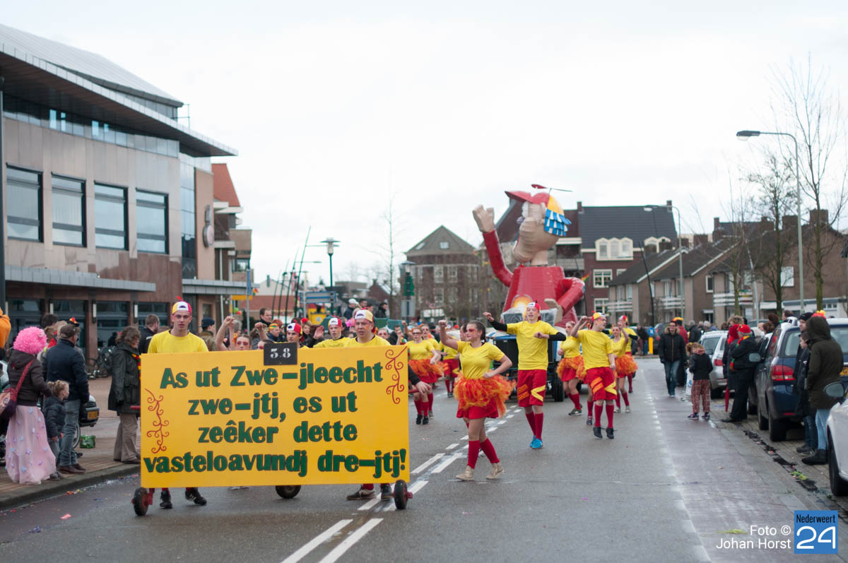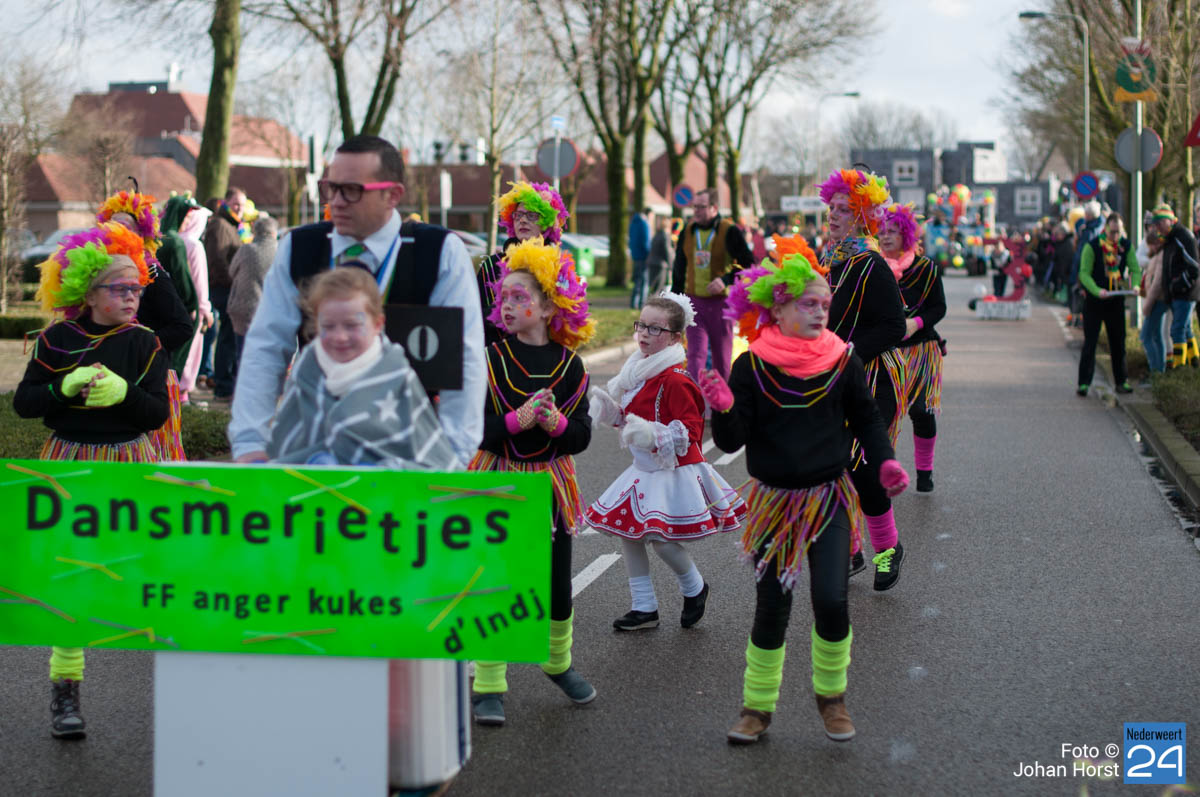 De mensen stroomden nog snel de straten op zodat het in de Brugstraat, Horecaplein, Geenenstraat en Loverstraat maar ook langs de rest van de route was het nog gezellig druk. Een paar wagens hebben helaas zelf de keuze gemaakt om niet mee te trekken. Een hiervan is de altijd succesvolle groep VV de Prullejoekels uit Nederweert-Eind. Zij durven het niet aan. Ook VV Gekkenwerk besloot, ondanks dat ze wel al naar Nederweert waren gekomen, niet mee te doen.