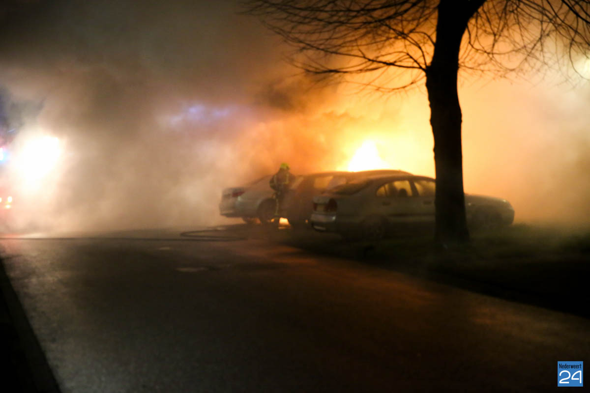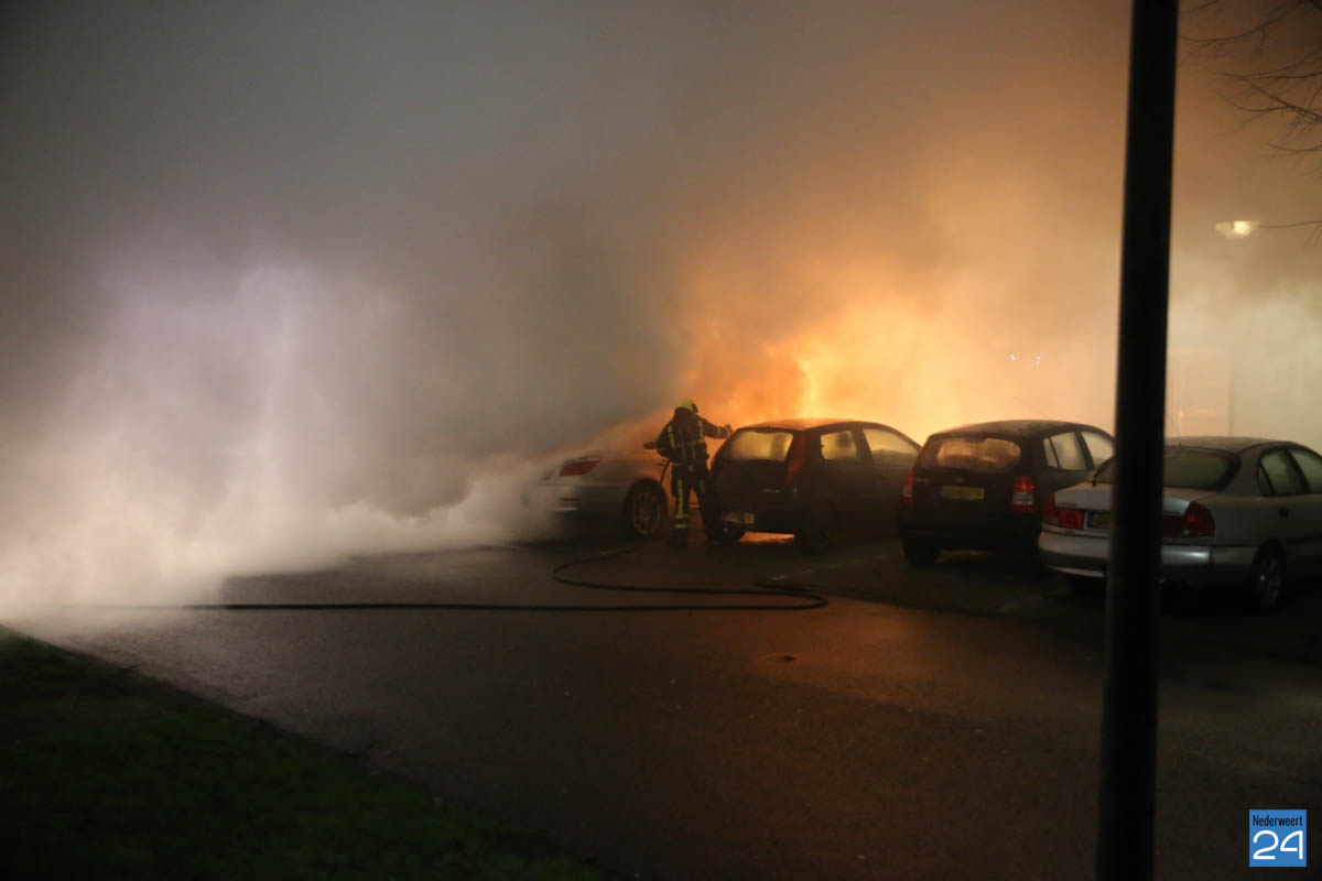 In de nacht van dinsdag op woensdag is op de Charlotte van Bourbonstraat in Weert één auto volledig uitgebrand en hebben zeker twee auto’s flinke schade opgelopen.